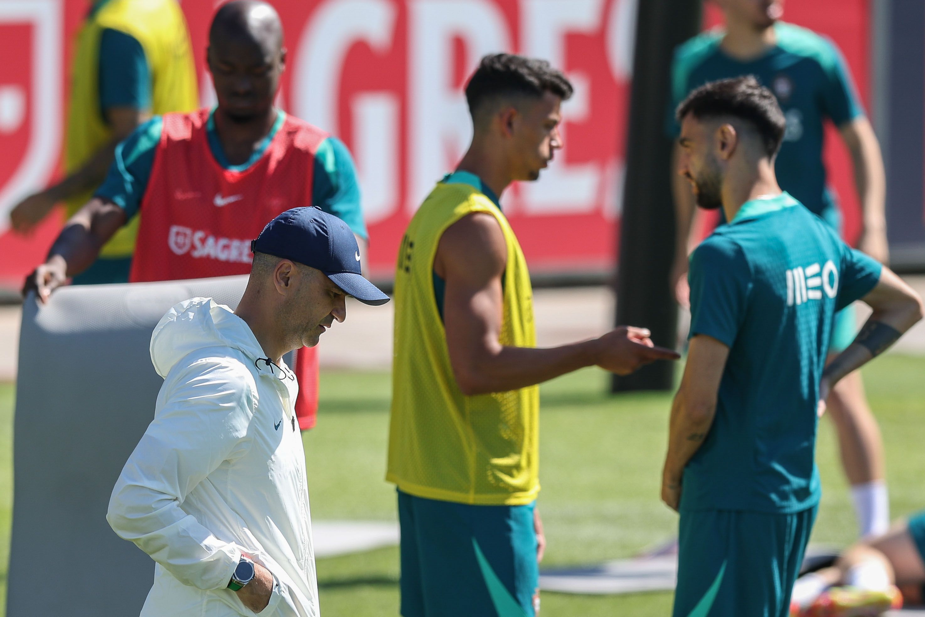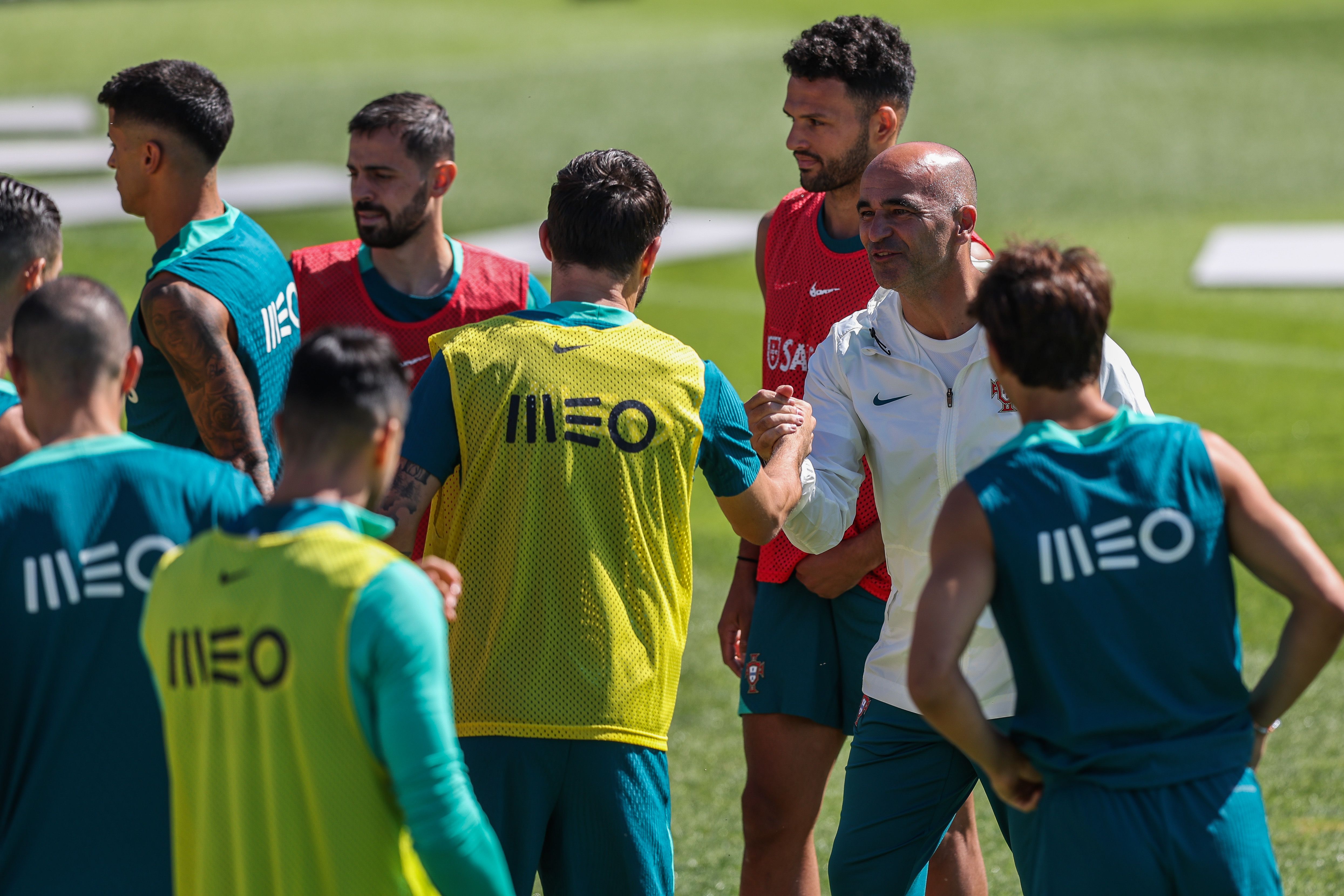Equipa nacional cumpre treino que conta com os 26 convocados a trabalhar sem limitações antes de partir para a disputa do Euro 2024; início de sessão foi marcado por boa disposição e desafio de 'skills' entre António Silva e João Neves