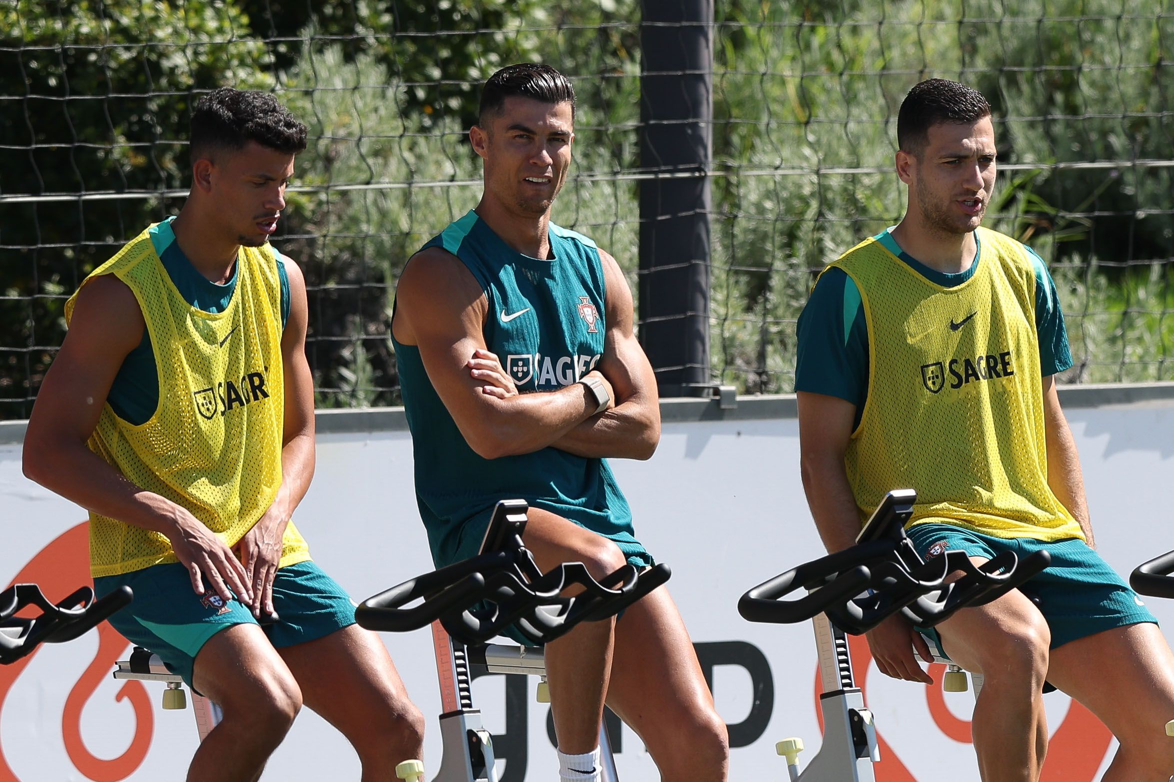 Todos os 26 convocados estiveram a fazer exercícios de aquecimento nas bicicletas e nos tapetes, sem limitações, enquanto os jornalistas estiveram presentes nas bancadas.