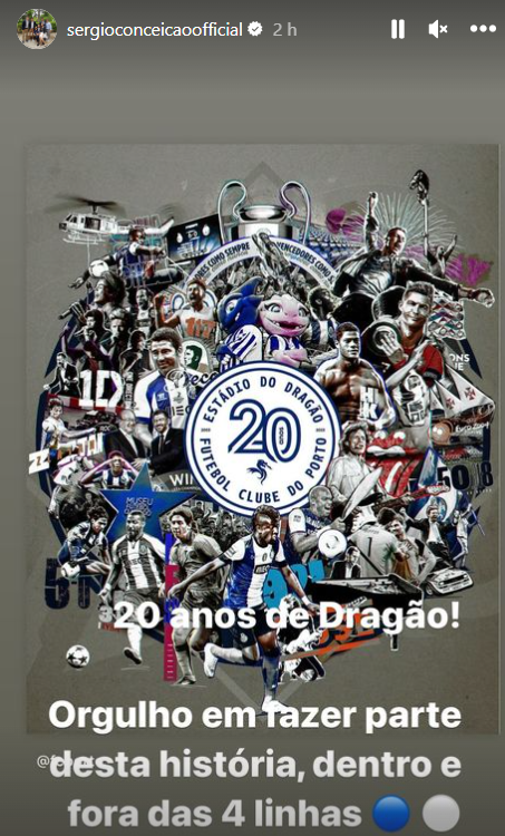 O treinador do FC Porto deixou uma mensagem na conta pessoal do Instagram, para abordar os 20 anos do Estádio do Dragão. Sérgio Conceição mostrou-se orgulhoso por fazer parte da história do clube.