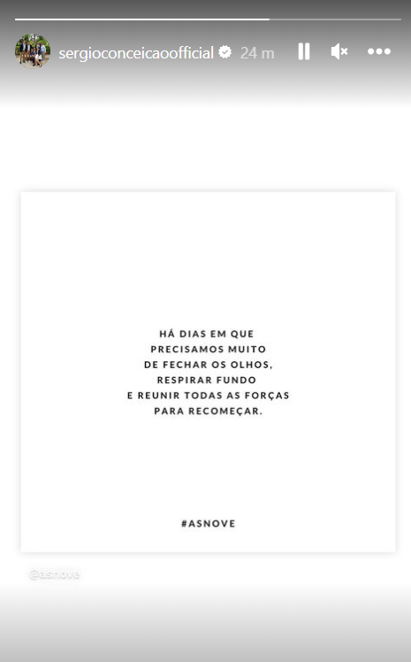 Sérgio Conceição recorreu às suas redes sociais para deixar uma mensagem enigmática, partilhando uma publicação de outra conta no Instagram: Às Nove. A frase é a seguinte: