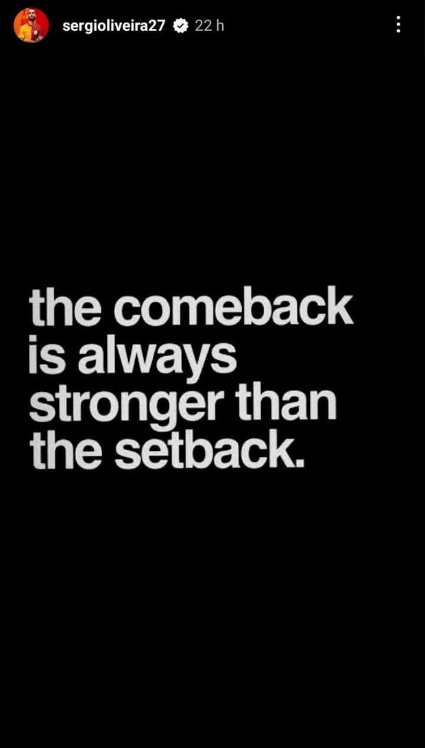 O internacional português também reagiu a este revés, publicando uma mensagem na rede social Instagram: «O regresso é sempre mais forte do que o contratempo.»