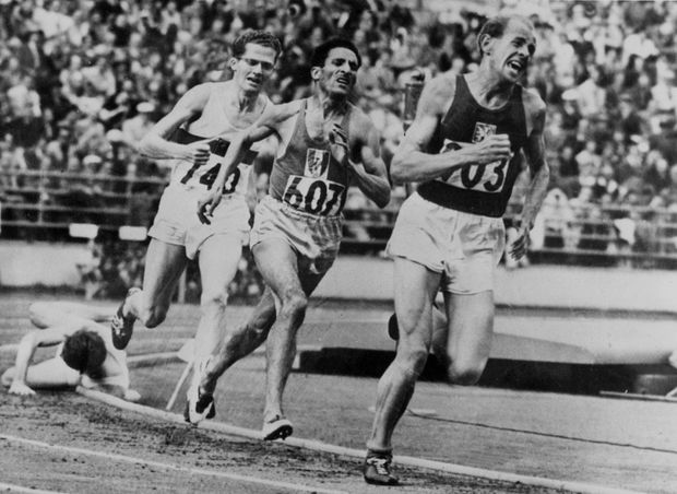 O feito apenas foi alcançado uma vez, mas por um homem, o checoslovaco Emil Zatopek, em Helsínquia 1952.