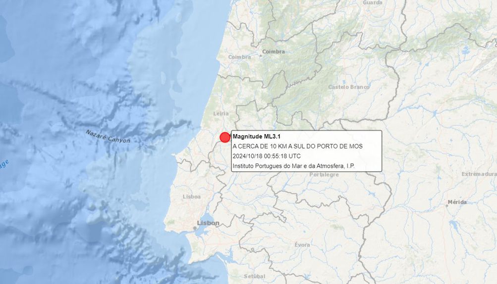 O Instituto Português do Mar e da Atmosfera informou que na madrugada desta sexta-feira, foi registado um sismo de magnitude 3.1 (Richter), cujo epicentro se localizou a cerca de 10 km a Sul do Porto de Mós.