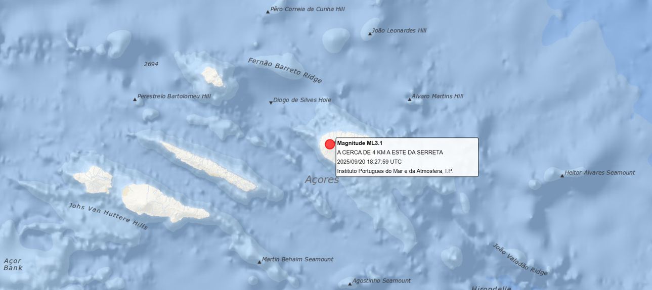 Segundo o Instituto Português do Mar e da Atmosfera, «no dia 20-09-2025 pelas 18:27 (hora local) foi registado nas estações da Rede Sísmica do Arquipélago dos Açores, um sismo de magnitude 3,1 (Richter) e cujo epicentro se localizou a cerca de 4 km a Este da Serreta (Terceira)».