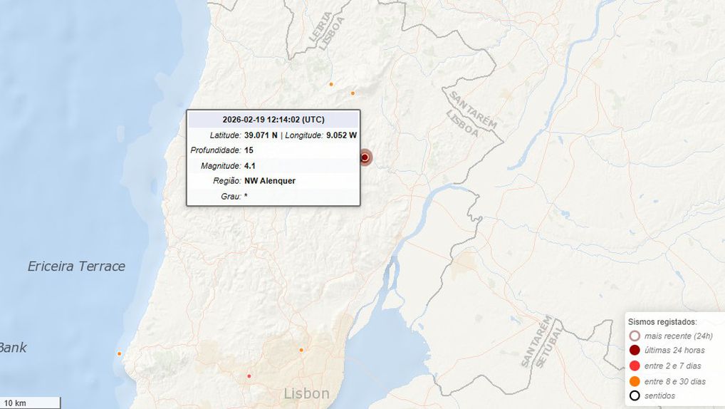 De recordar que há sensivelmente um ano, a 17 de fevereiro de 2025, foi registado um sismo de 4.7 também na região de Lisboa, com epicentro a cerca de 14 km a Oeste-Sudoeste do Seixal.