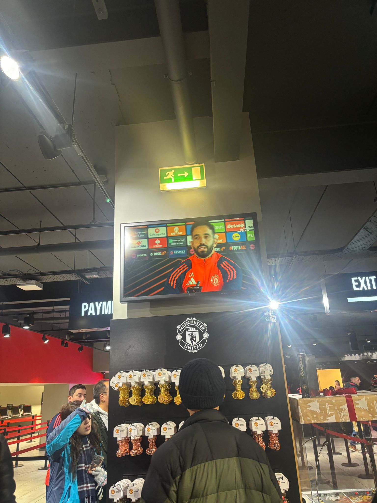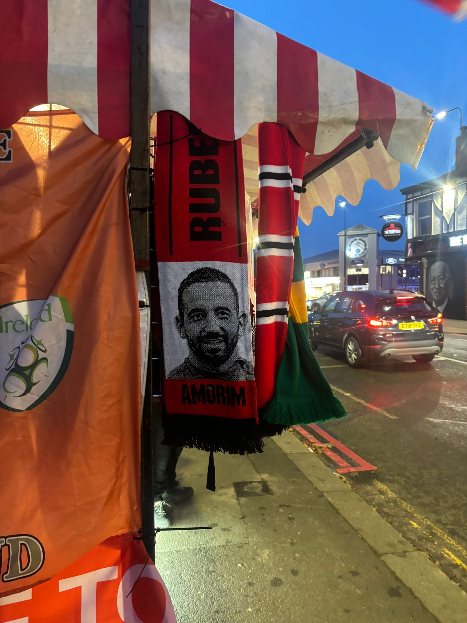 Este «treinador que veio do Sporting» domina conversas e reúne enorme curiosidade. De permeio, vai ganhando o seu espaço nas montras mais dadas ao futebol. A caminho de Old Trafford, já depois de se deixar para trás a respetiva estação de Metrolink, começam a aparecer os sinais: nos tradicionais pontos de venda veem-se bandeiras a desejar as boas-vindas a Ruben Amorim. Também já existem cachecóis personalizados do português, a compor escaparates junto de figuras como Alex Ferguson, Cristiano Ronaldo, David Beckham, George Best, Bobby Charlton, Eric Cantona e tantos outros.