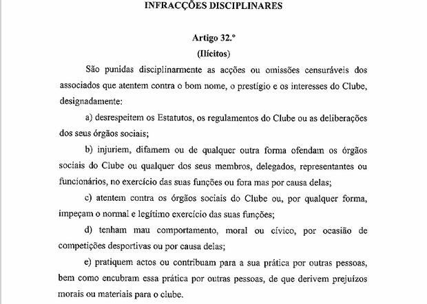 Como medida disciplinar, o artigo seguinte dos estatutos do FC Porto sugere quatro hipóteses — advertência, repreensão registada, suspensão e expulsão.