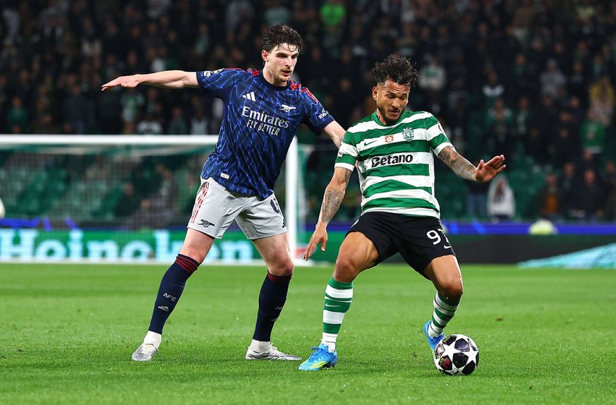 Declan Rice e Luis Suáreza disputam a bola em Alvalade - Foto: Michael Zemanek/IMAGO - Foto: IMAGO