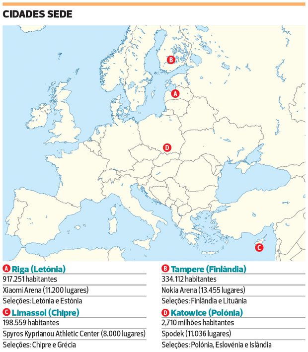 Quatro edições depois da presença no Lituânia-2011, Portugal está de regresso ao EuroBasket, 42.º campeonato que decorrerá entre 27 de agosto e 14 de setembro e cuja fase inicial está dividida por quatro cidades de quatro países: Riga (Letónia), Tampere (Finlândia), Limassol (Chipre) e Katowice (Polónia).