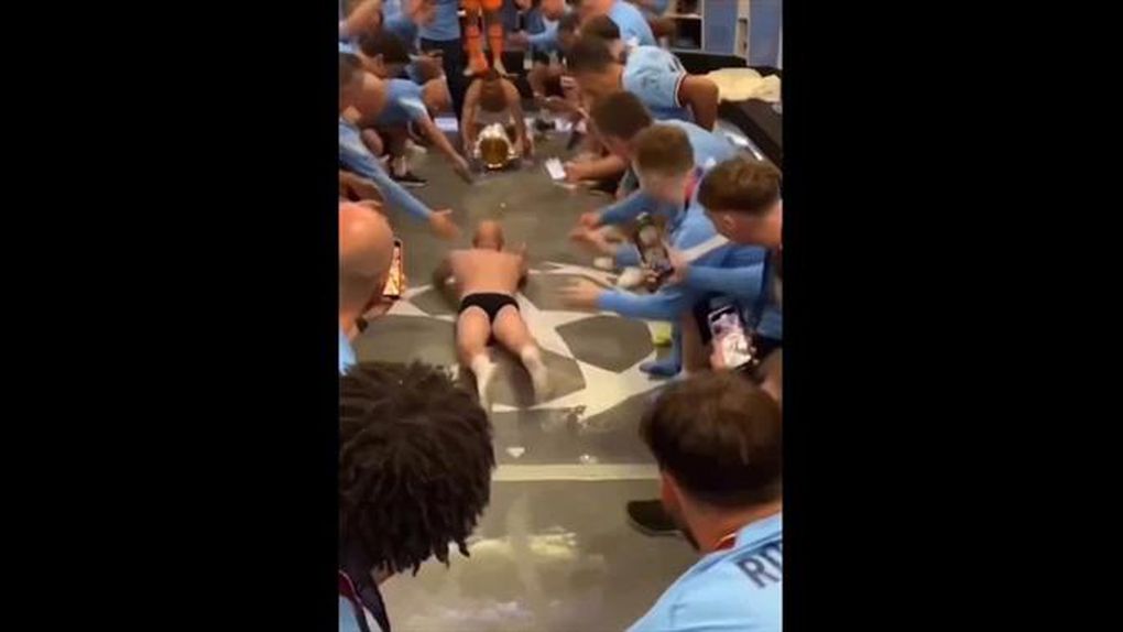 Parece Pep Guardiola, mas não é! Após a conquista da Champions, o roupeiro do Man. City voltou a protagonizar um festejo que já se tornou clássico nas comemorações dos 'citizens' (e são muitas)...