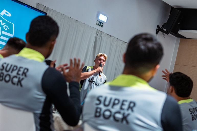 David Moreira foi um dos jogadores que subiu ao palco improvisado (Foto: Sporting CP)