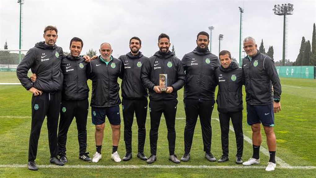 No treino deste domingo, a equipa técnica que lidera recebeu um troféu entregue pelo Sporting a assinalar as 100 vitórias alcançadas. A sessão serviu de recuperação para os jogadores que atuaram sábado frente ao Portimonense. Daniel Bragança continuou em tratamento, enquanto os restantes viraram já atenções paa a Liga Europa: na quinta-feira (17.45 horas) os leões recebem o Arsenal na primeira mão dos oitavos-de-final.