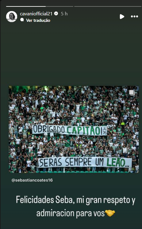 Também Cavani, craque uruguaio do Boca Juniors, lembrou o seu companheiro de seleção e não deixou passar despercebido o seu adeus ao Sporting, onde passou as últimas oito épocas e meia.