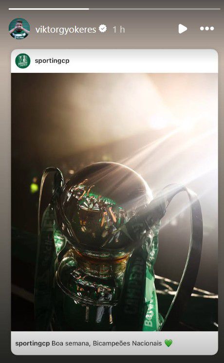 O avançado partilhou nas suas redes sociais uma publicação do Sporting com uma fotografia do troféu de campeões nacionais com a legenda: «Boa semana, bicampeões nacionais».
