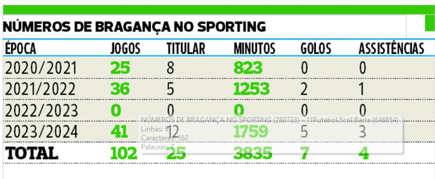 Na última jornada, em Famalicão, foi titular por mérito próprio, relegando Morita para o banco de suplentes (de onde o camisola 23 foi o jogador que mais vezes foi lançado) e no final, na conferência de imprensa, foi elogiado por Rúben Amorim, que já não é a primeira vez que o faz.