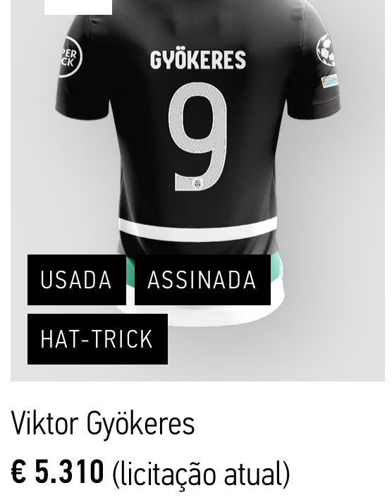 A quatro dias do encerramento do leilão, levado a cabo pelo site MatchWornShirt, a camisola que Gyokeres usou no jogo com o Manchester City, referente à 4.ª jornada da fase de liga da Liga dos Campeões, que o Sporting venceu por 4-1, com o sueco a assinar um hat trick já atingiu um valor elevadíssimo.