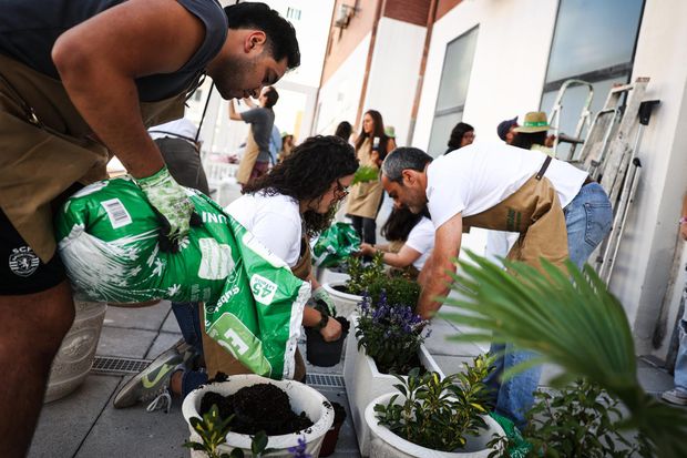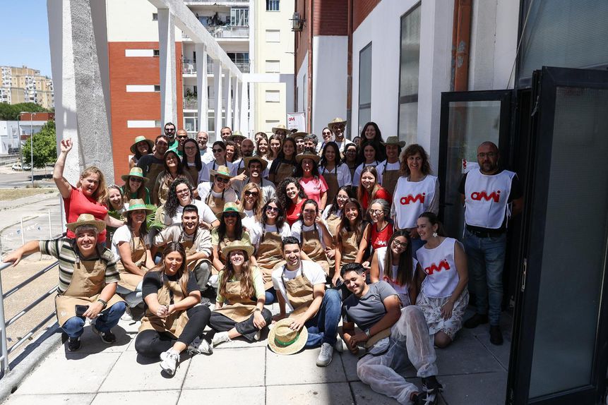 Cerca de 50 voluntários, todos colaboradores do Sporting puseram mãos à obra para ajudar a pintar e a montar um espaço de lazer para os beneficiários da Porta Amiga, um projeto de ação social em Portugal da AMI (Assistência Médica Internacional).