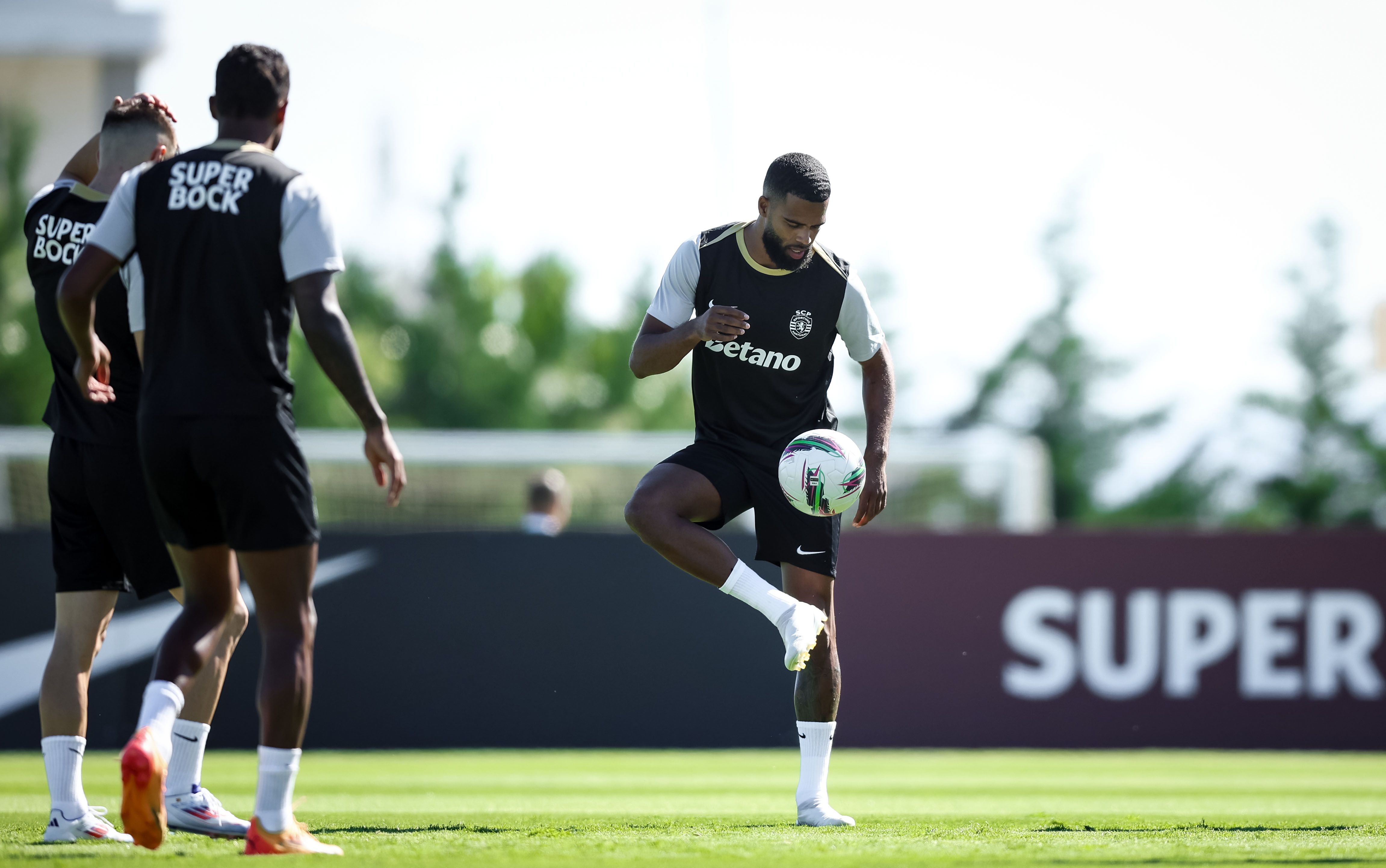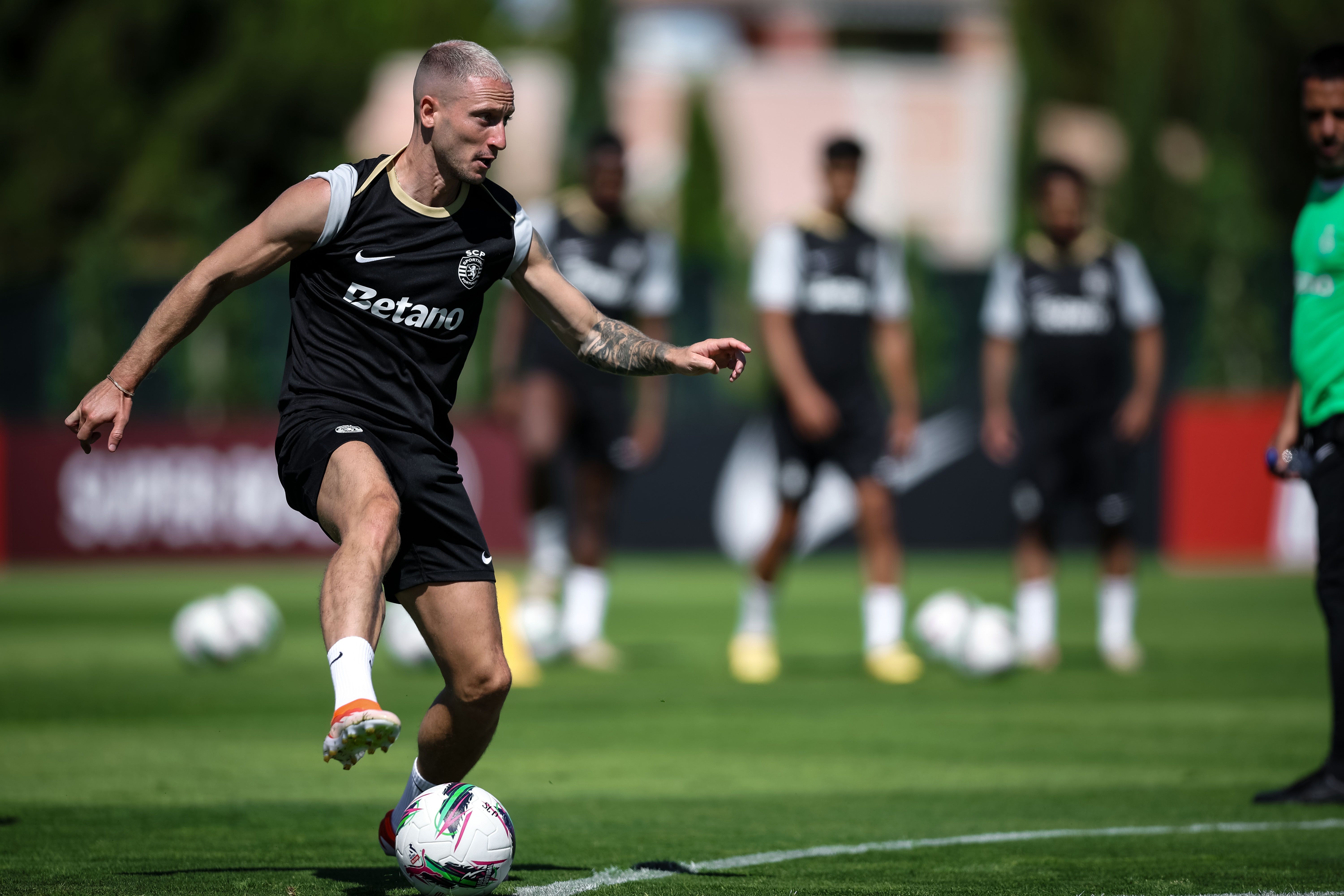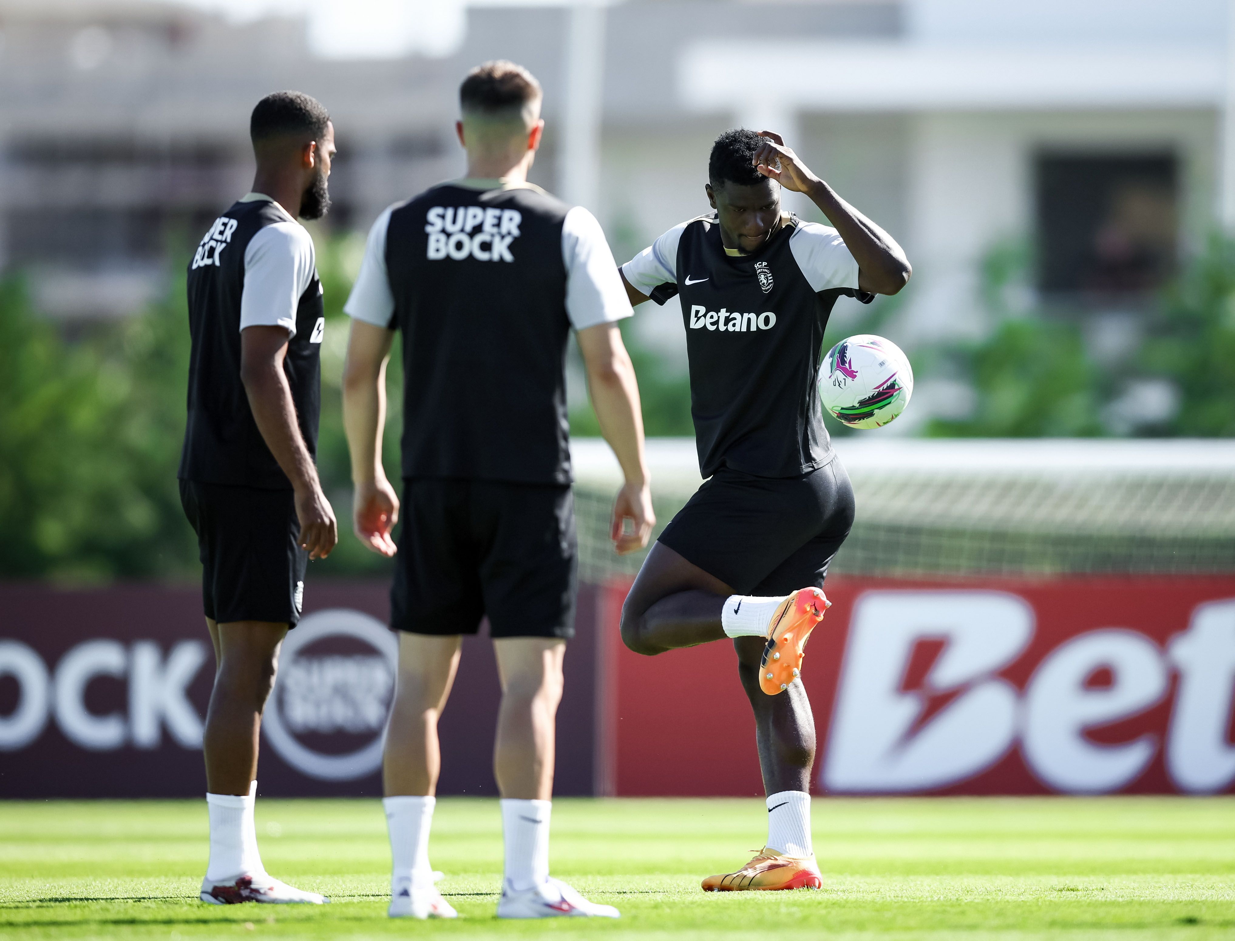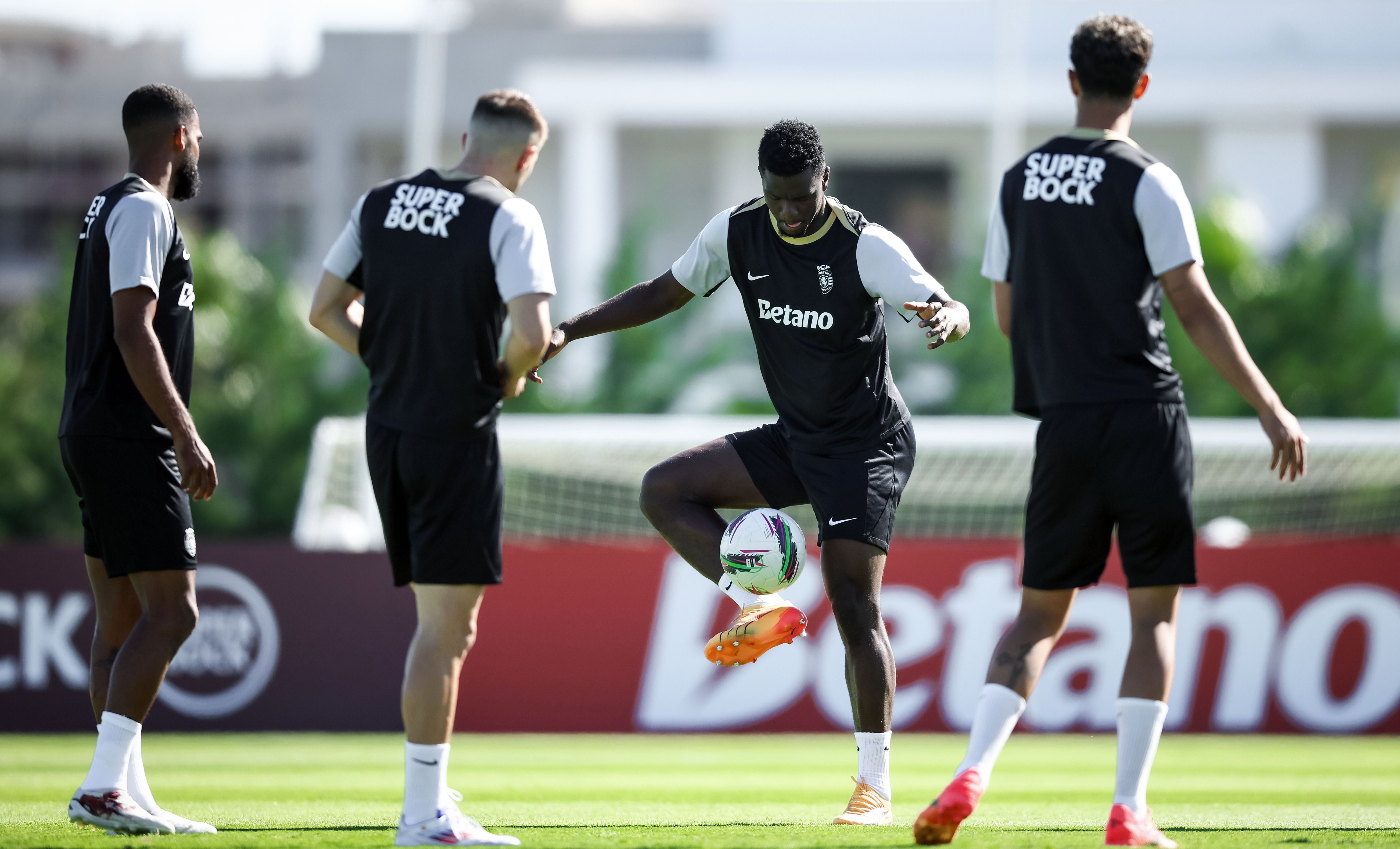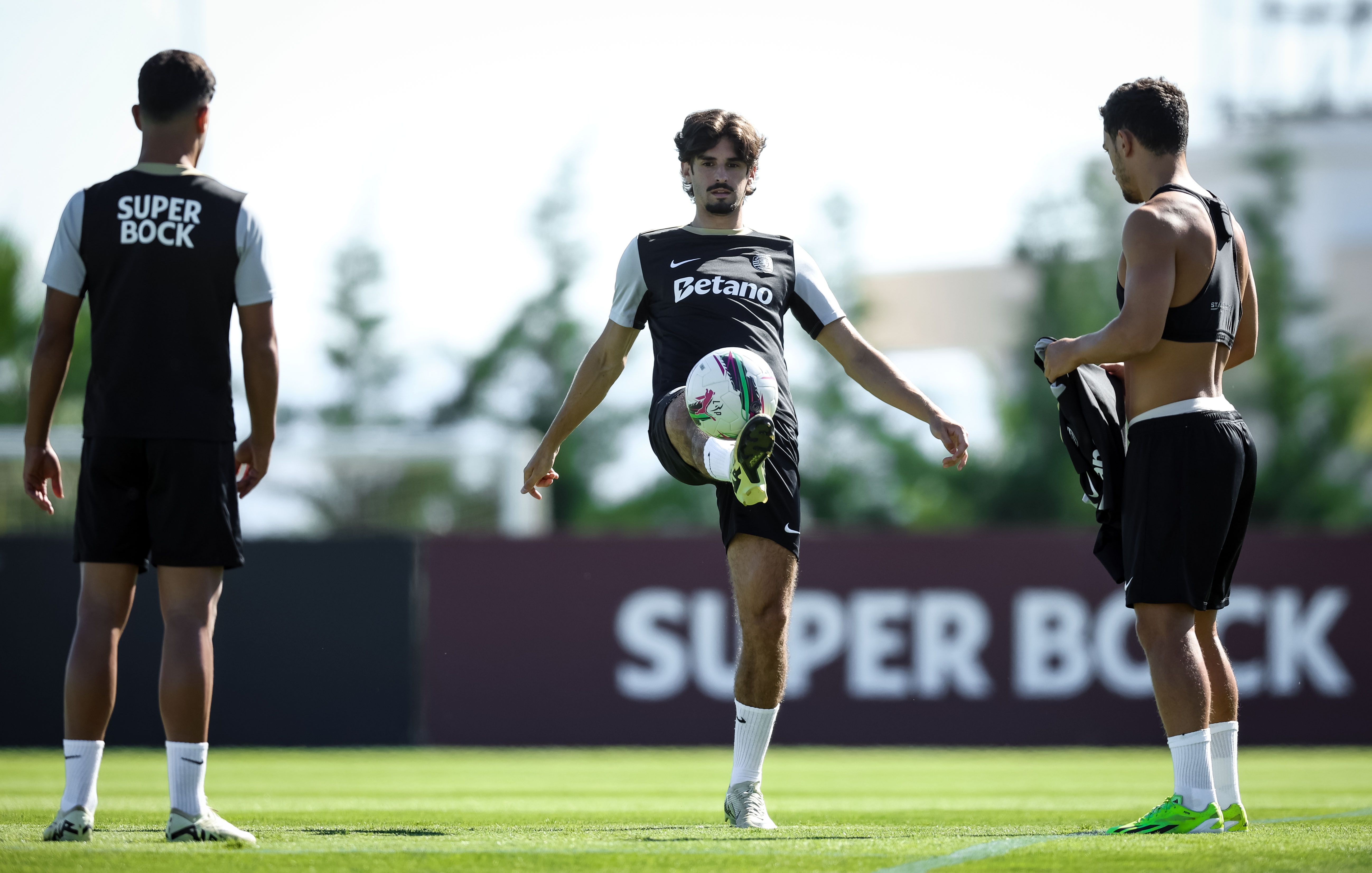 Os jogadores treinaram, de manhã, no relvado, onde, à entrada, foi pintada mensagem onde se lia ‘Bem-vindos campeões’, com Rúben Amorim a ter todos os jogadores à sua disposição, exceção feita a Gyokeres, que ficou pelo ginásio a fazer trabalho específico de recuperação, na sequência da intervenção cirúrgica ao joelho esquerdo, em maio.
