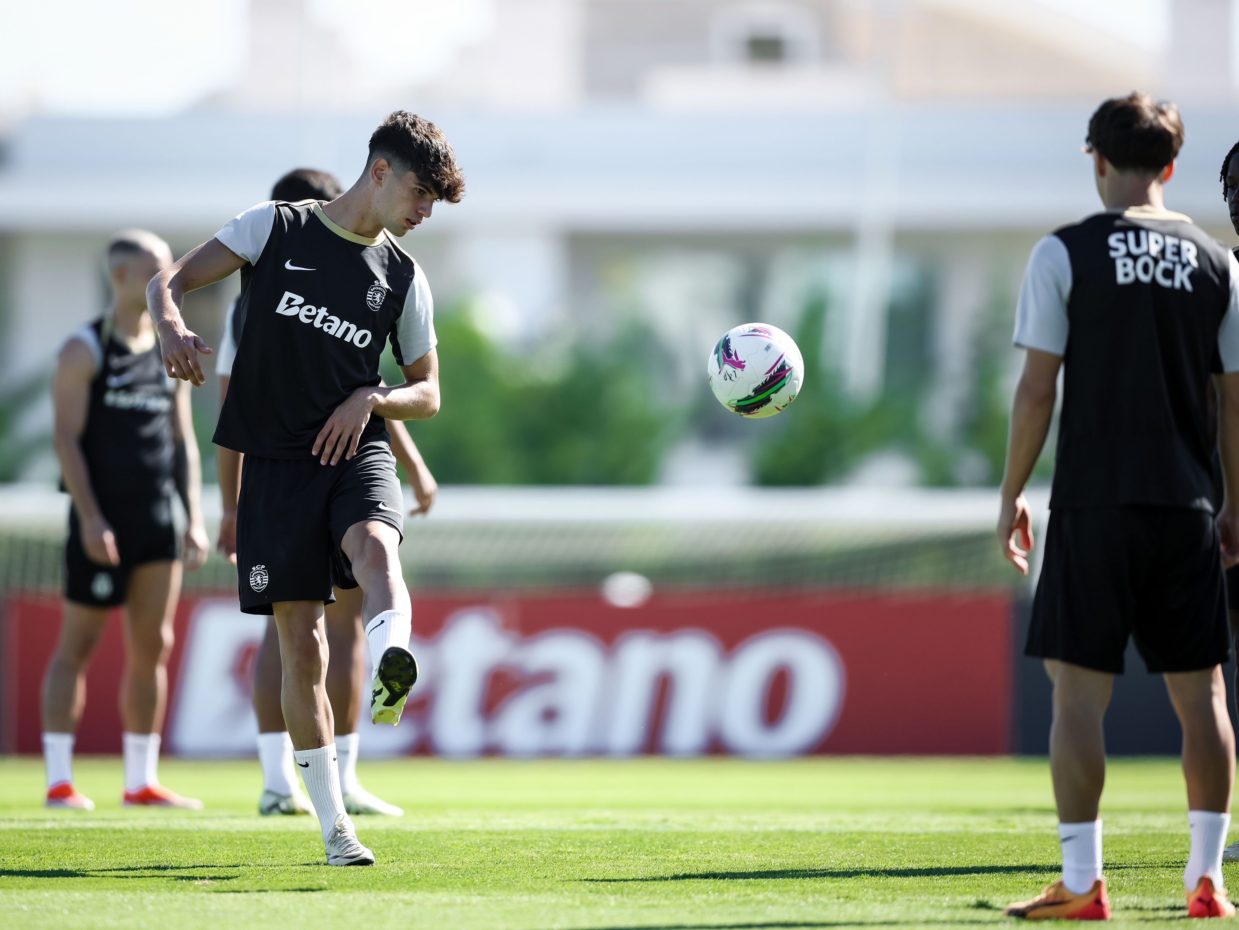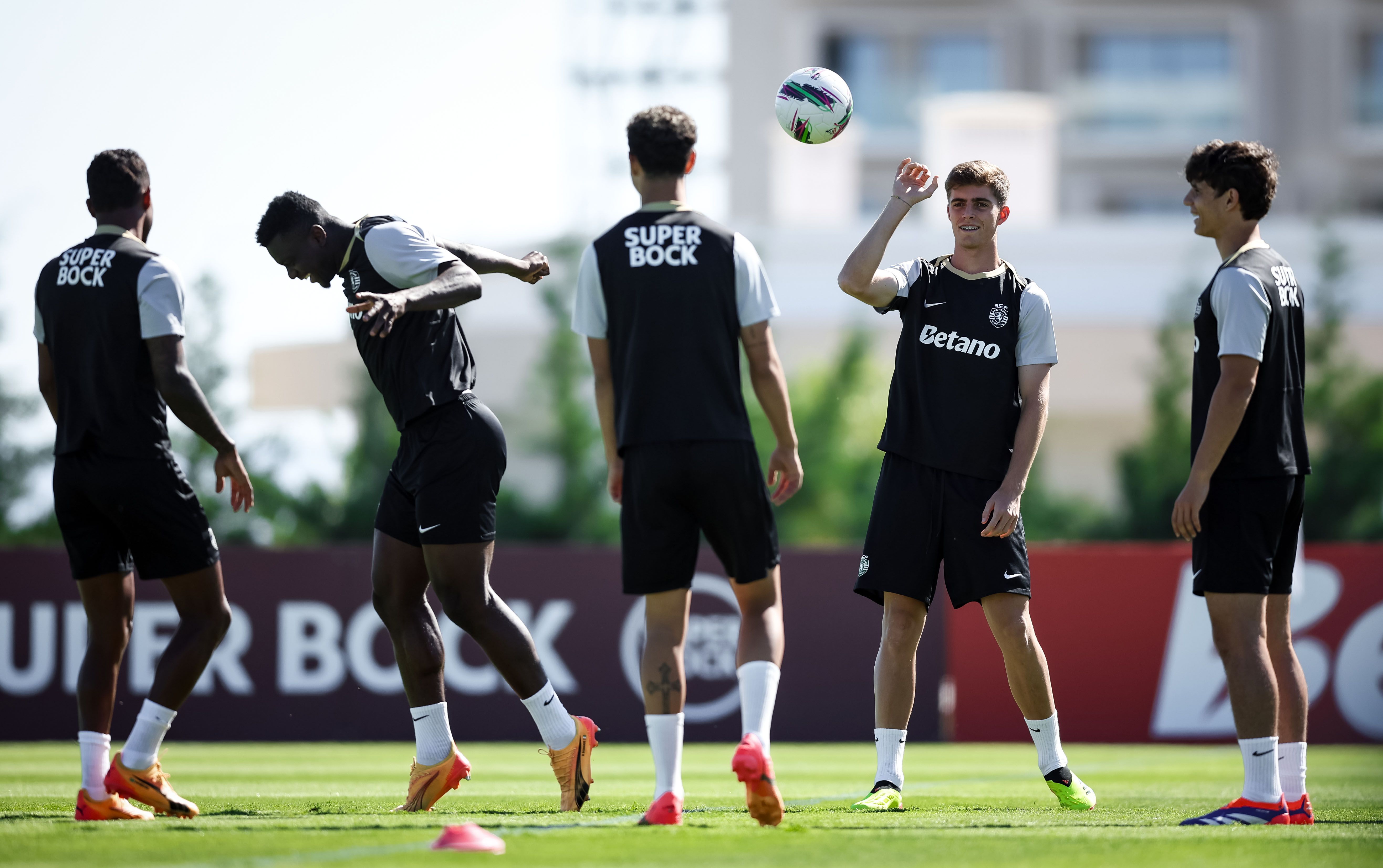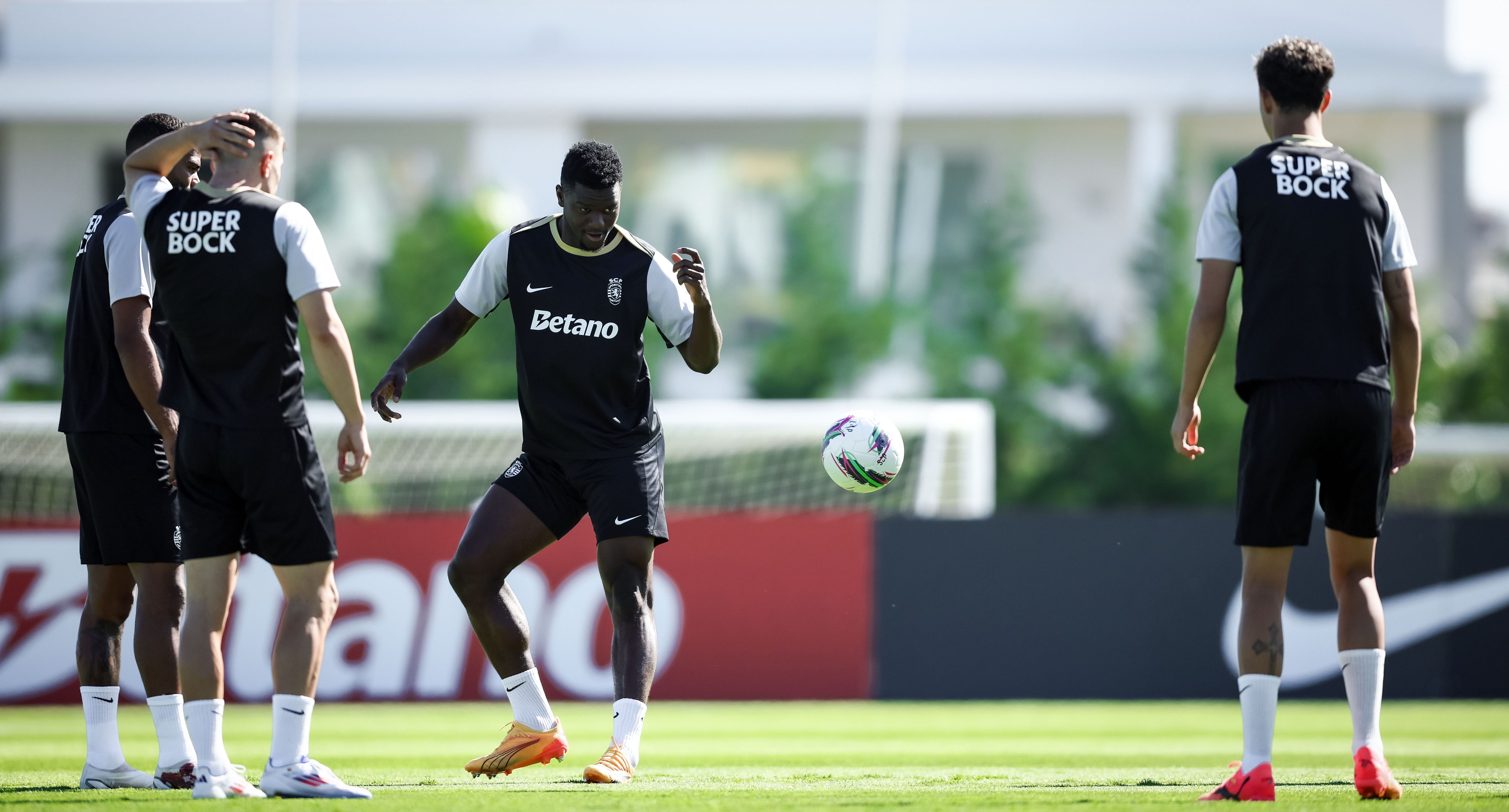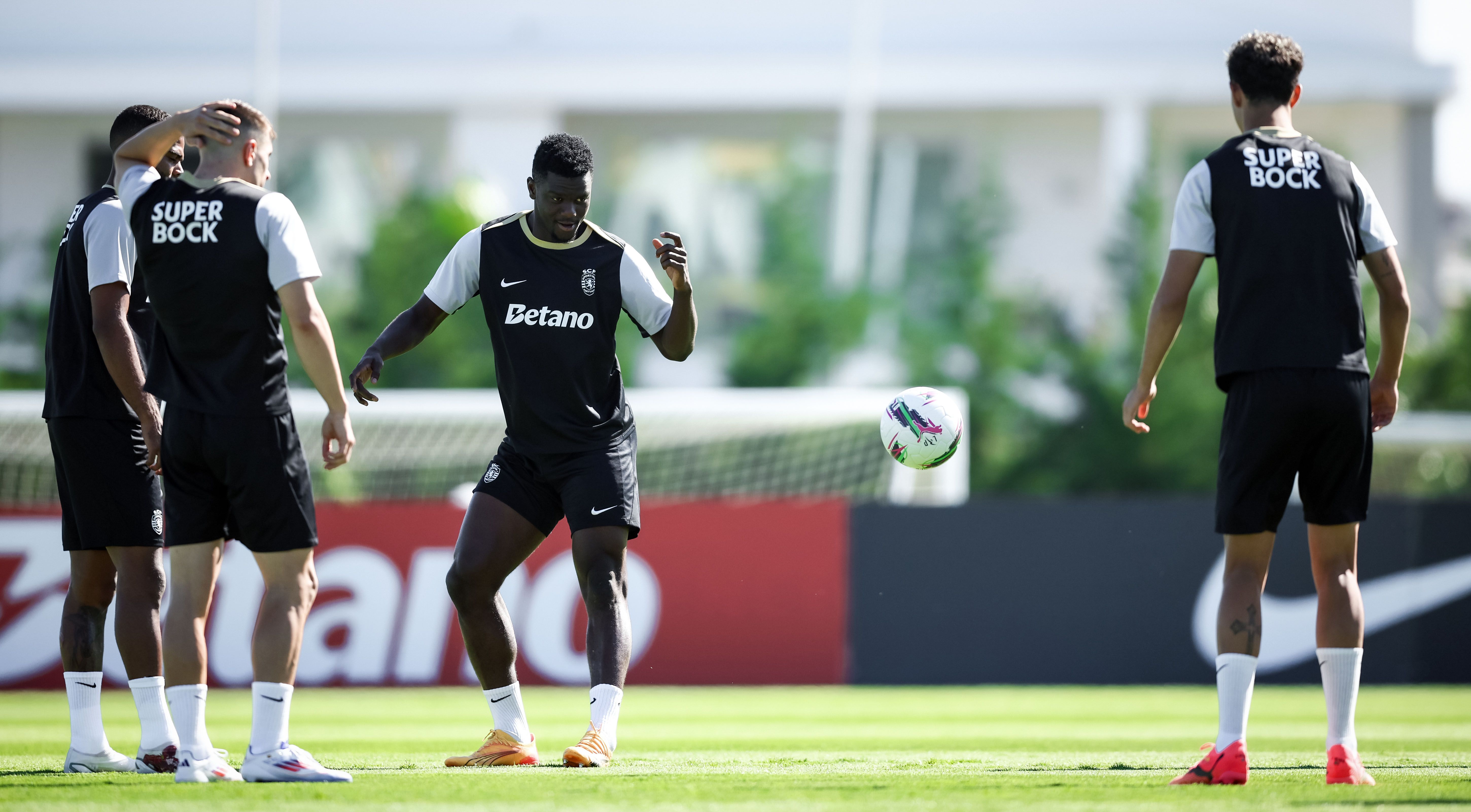 Os jogadores treinaram, de manhã, no relvado, onde, à entrada, foi pintada mensagem onde se lia ‘Bem-vindos campeões’, com Rúben Amorim a ter todos os jogadores à sua disposição, exceção feita a Gyokeres, que ficou pelo ginásio a fazer trabalho específico de recuperação, na sequência da intervenção cirúrgica ao joelho esquerdo, em maio.