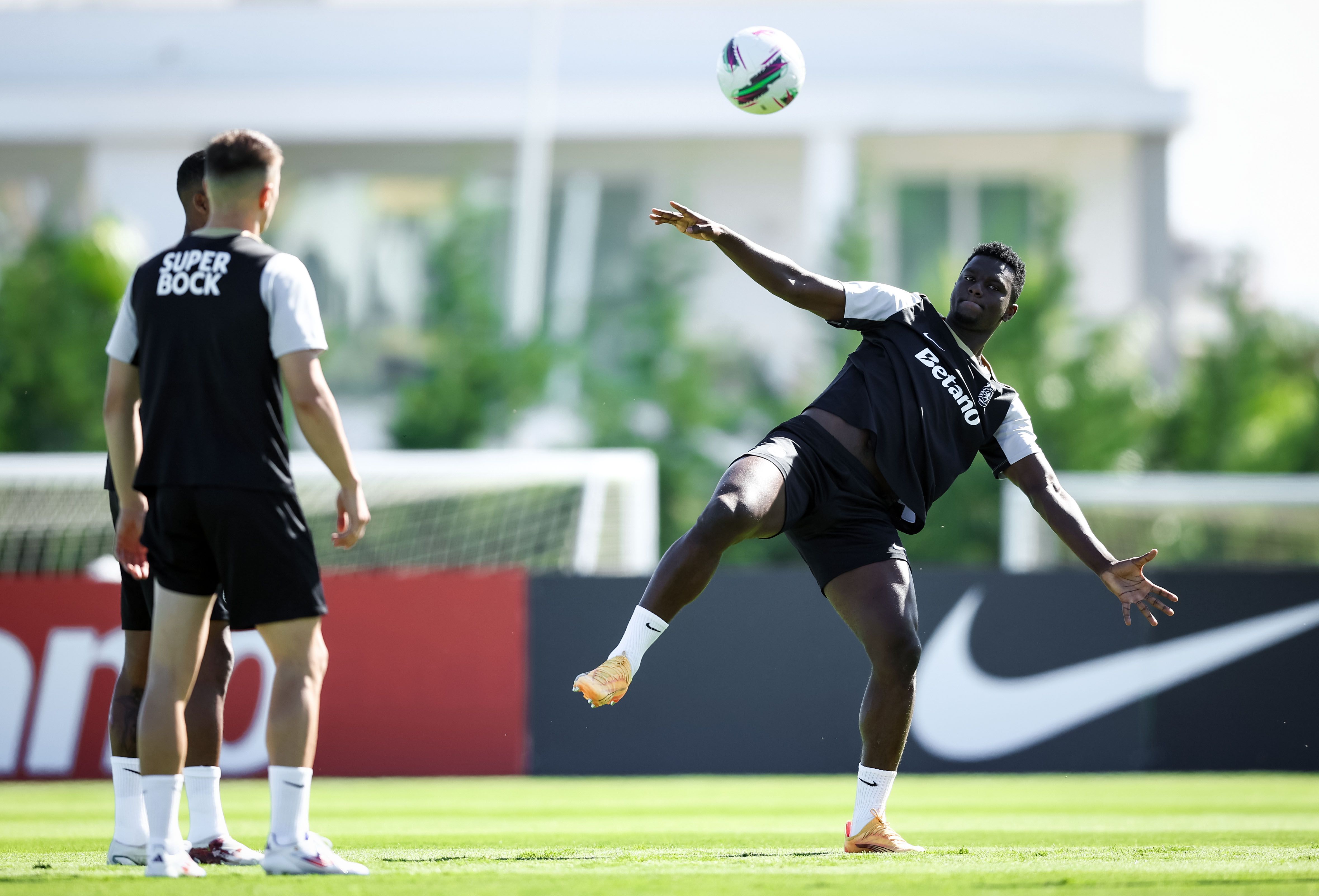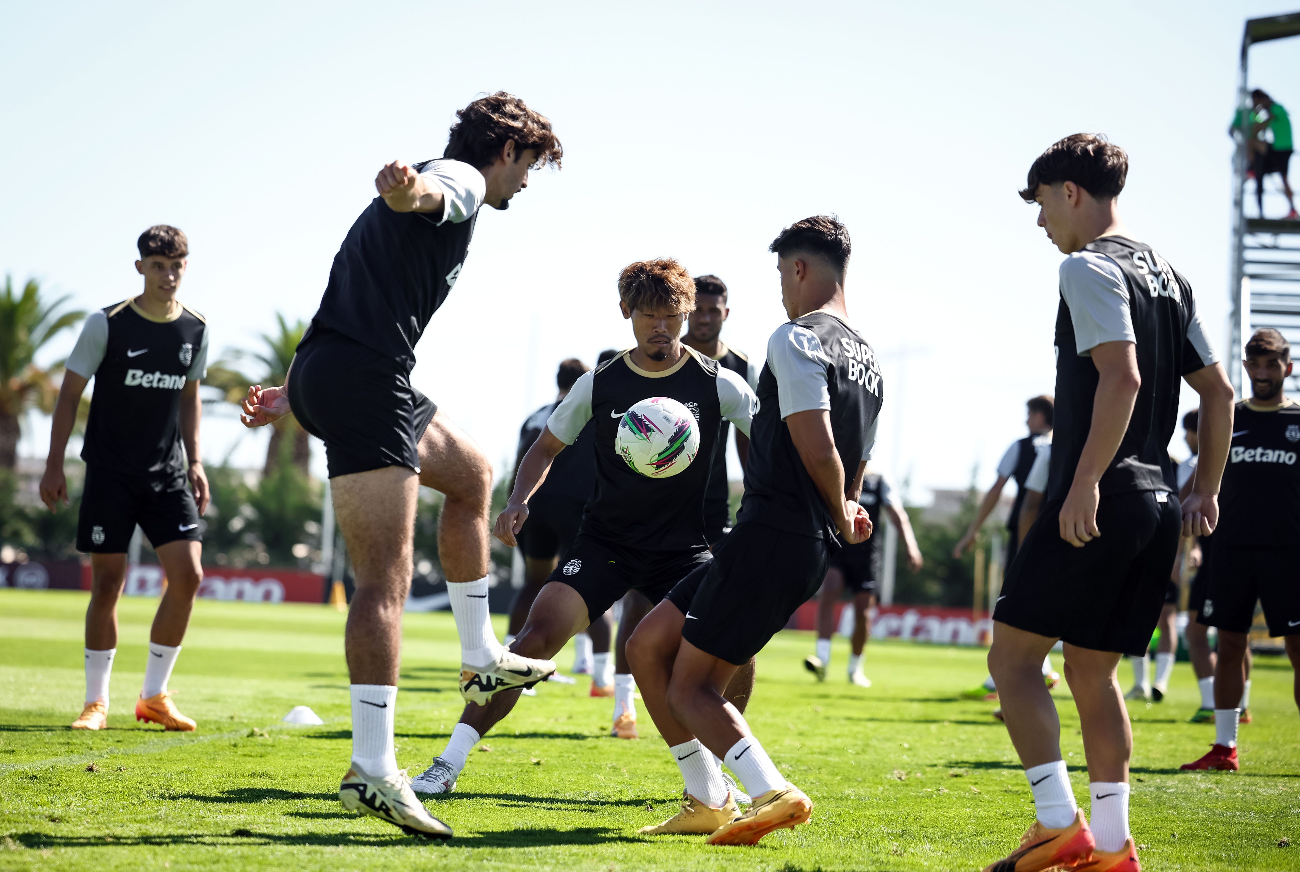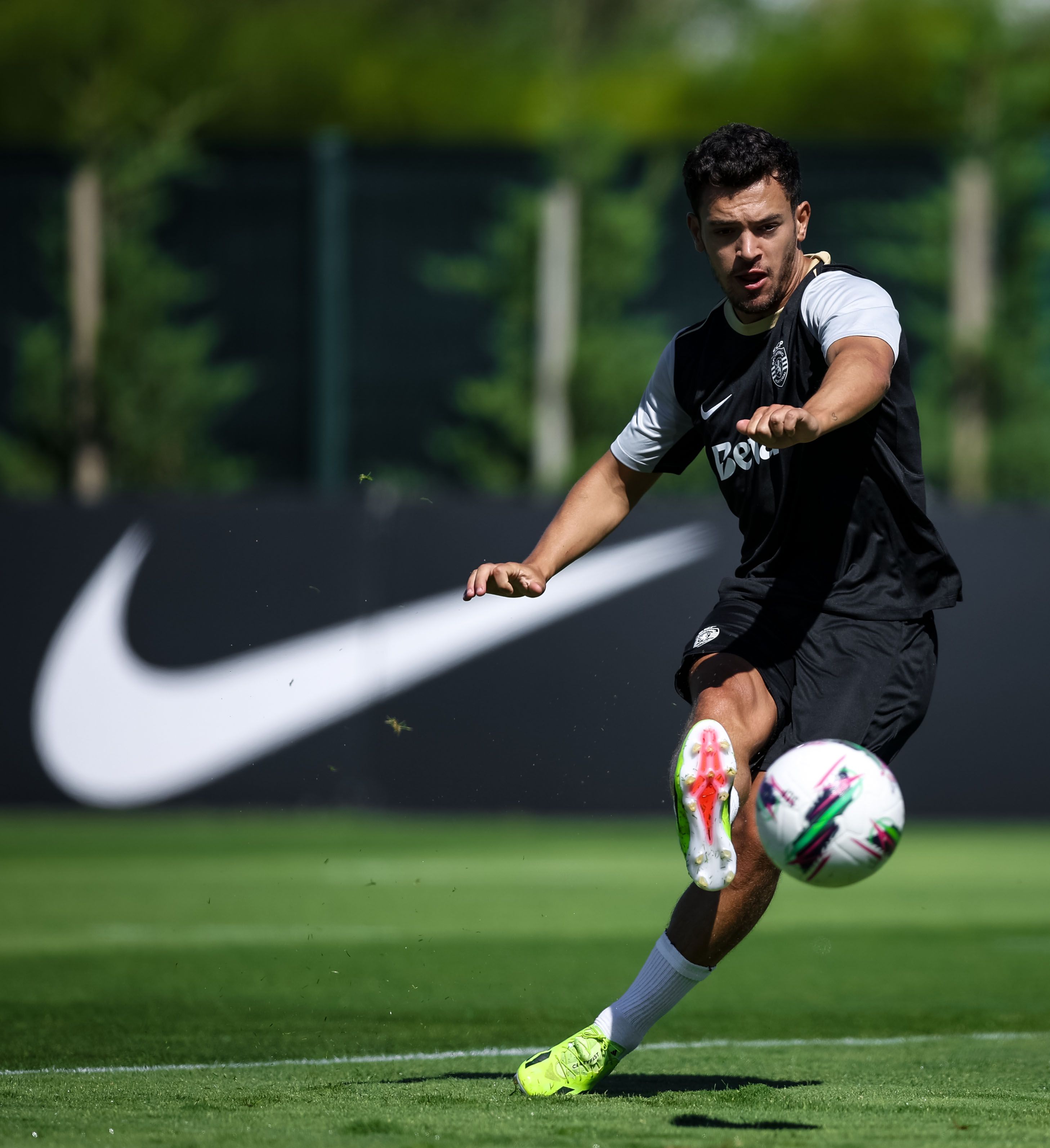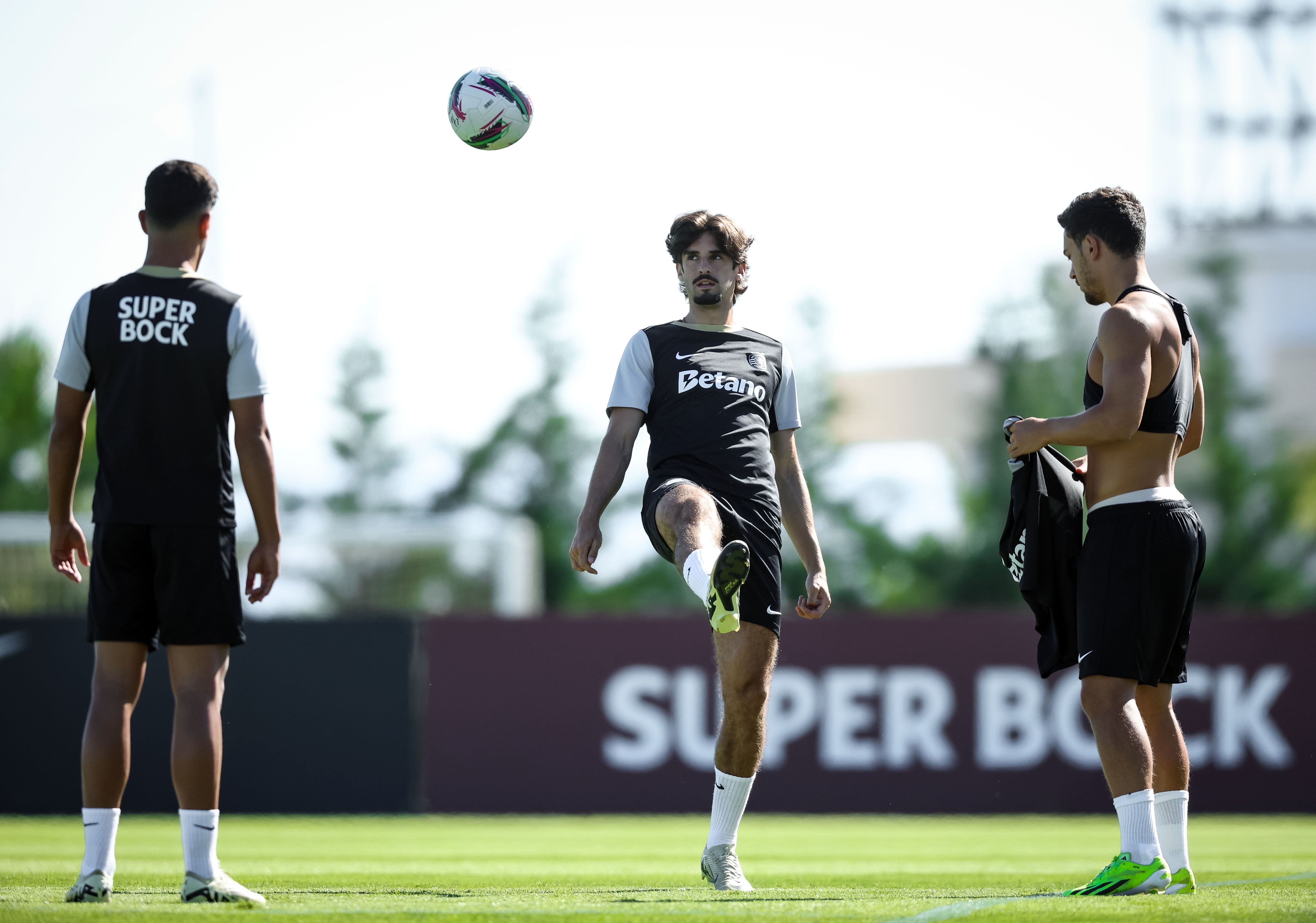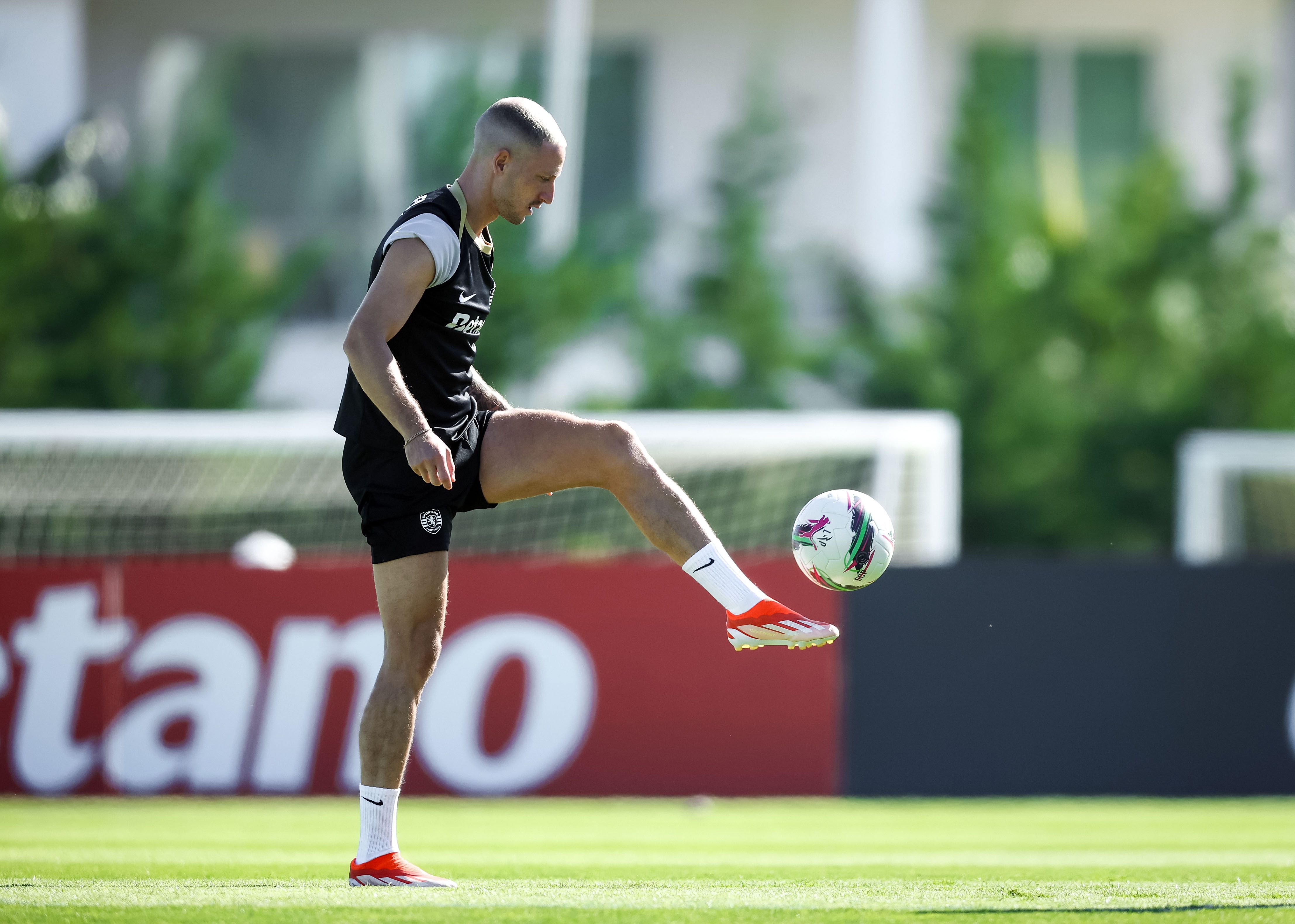 Os jogadores treinaram, de manhã, no relvado, onde, à entrada, foi pintada mensagem onde se lia ‘Bem-vindos campeões’, com Rúben Amorim a ter todos os jogadores à sua disposição, exceção feita a Gyokeres, que ficou pelo ginásio a fazer trabalho específico de recuperação, na sequência da intervenção cirúrgica ao joelho esquerdo, em maio.