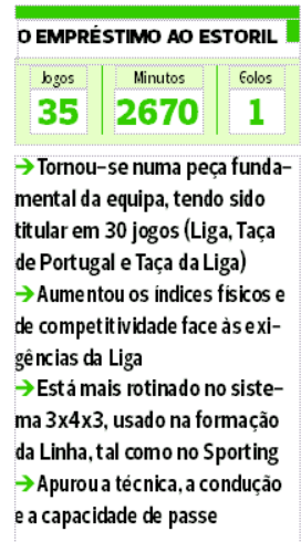 Falamos, então, de um jogador com ADN de Alcochete, perfeitamente identificado com os métodos de trabalho, filosofia de jogo e ideias do treinador da equipa principal que, refira-se, nunca o abandonou nesta época em que esteve cedido, tendo falado com o jogador várias vezes, na sequência das análises semanais que ia recebendo do departamento que fez o devido acompanhamento do jogador.