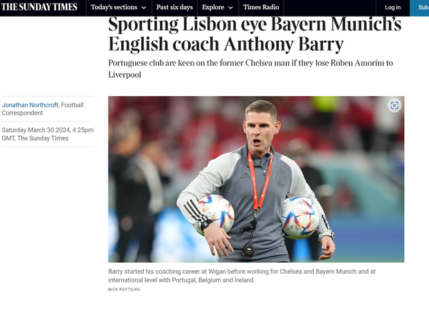 «Sporting está de olho no técnico inglês do Bayern, Anthony Barry»: assim titula o insuspeito 'The Times' a notícia a dar conta de que a administração leonina está a precaver o futuro na possibilidade de saída de Rúben Amorim no final da época, tal a insistência com que se fala no interesse de clubes de nomeada no treinador português de 39 anos.