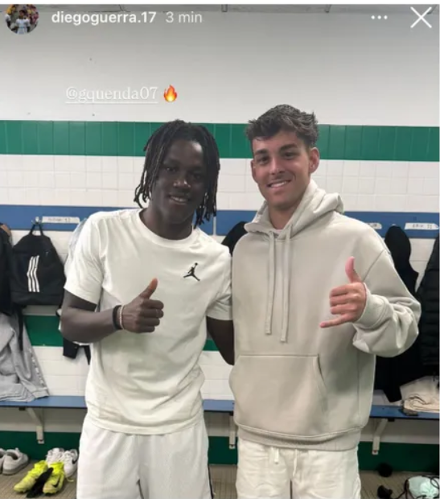 Diego Guerra, 18 anos, está a cumprir um período de testes na Academia Cristiano Ronaldo. O médio ofensivo, proveniente do Retrô, da Série C brasileira, parece estar entusiasmado com a experiência, pelo menos a avaliar pelo que tem publicado nas redes sociais. Esta quarta-feira, na rede social Instagram, deu a conhecer uma foto em que está acompanhado por uma das figuras da equipa principal, Geovany Quenda que, curiosamente, é um ano mais novo.
