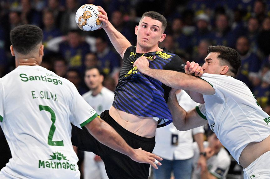 A três minutos do fim, o técnico gaulês pede time out porque o Sporting aproximou-se até aos 27-26, mas os franceses ganham um livre de sete metros (28-26), mas Natan Suaréz responde na mesma moeda (28-27).