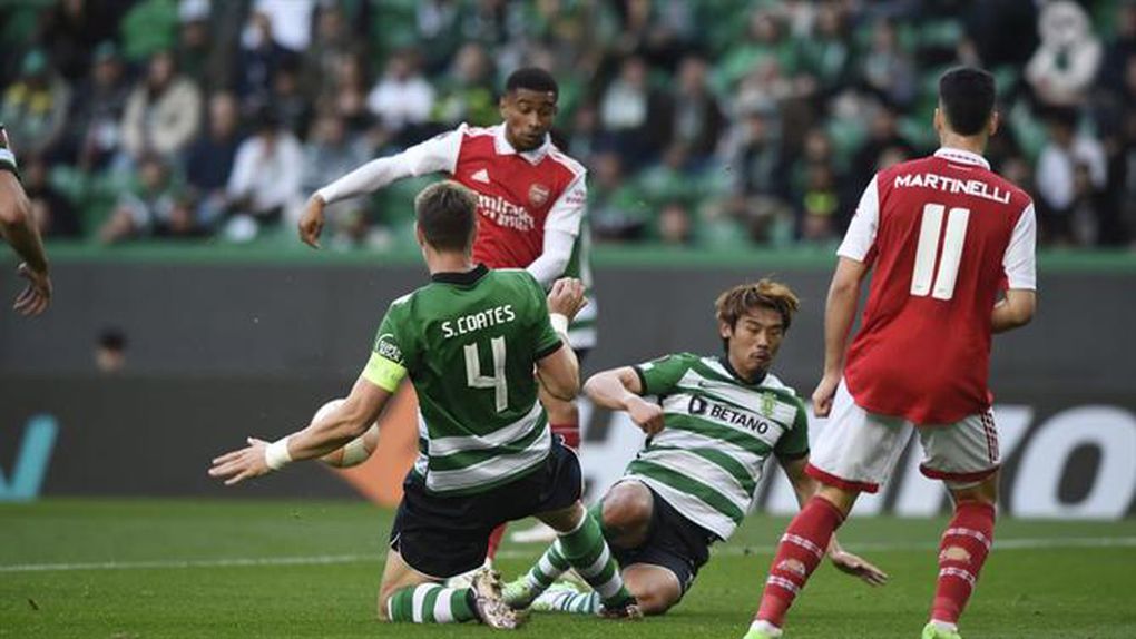 O Arsenal colocou-se em vantagem por Saliba, aos 22 minutos, num excelente golpe de cabeça. O leão reagiu e Gonçalo Inácio, também de cabeça, repôs a igualdade. Os ingleses ainda assustaram por Xhaka, mas Adán, com uma excelente intervenção, impediu o golo.