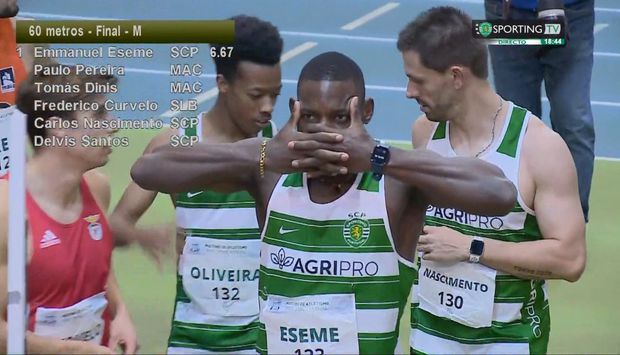 O atleta Emmanuel Eseme, camaronês de 29 anos, especialista nos 100, 200 e 4x100 metros, também adotou a celebração do sueco nas suas conquistas.