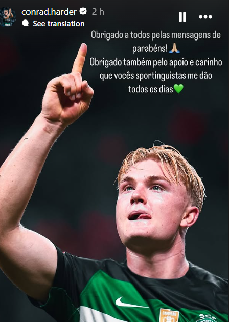 Conrad Harder celebrou seu 20.º aniversário na segunda-feira e esta terça recorreu às redes sociais, para deixar uma mensagem de agradecimento aos adeptos do Sporting que o felicitaram e apoiaram.«'Obrigado a todos pelas mensagens de parabéns! Obrigado também pelo apoio e carinho que vocês sportinguistas me dão todos os dias», escreveu o avançado dinamarquês.