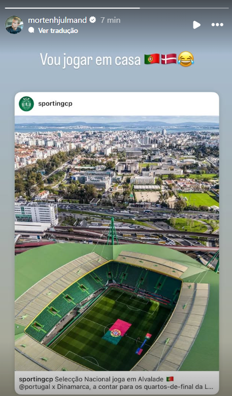 O dinamarquês publicou ainda um storie em que se mostra feliz por «jogar em casa» pela seleção da Dinamarca. O Estádio de Alavalade será palco do encontro entre Portugal e Dinamarca, referente à 2.ª mão dos quartos de final da Liga das Nações, no próximo ano.