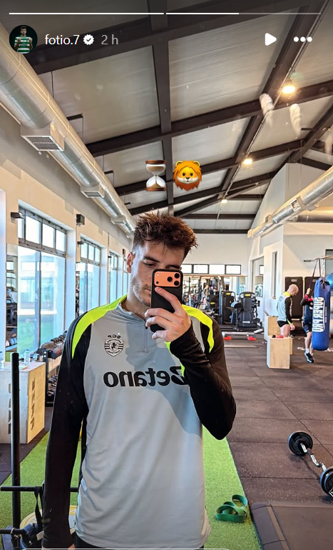 Fotis Ioannidis mostrou-se, esta quinta-feira, no ginásio da Academia de Alcochete - Nuno Santos também aparece na fotografia - legendando com uma ampulheta e um leão.