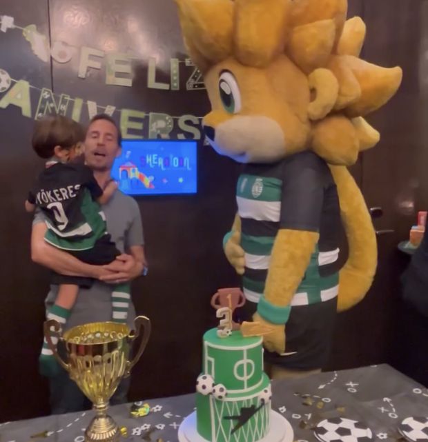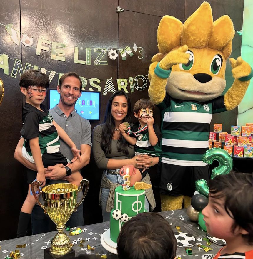 Futuro treinador dos leões, em dia de aniversário do filho mais novo, numa festa muito… verde e branca com a presença de Jubas, a mascote dos leões