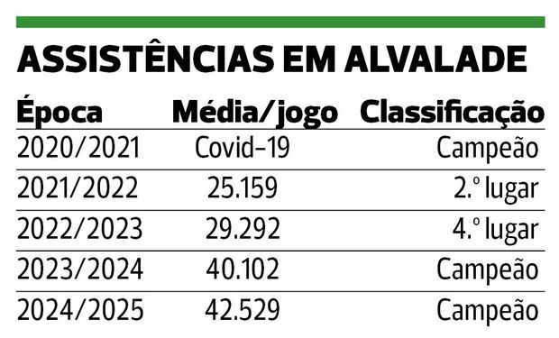 Além de que até ao final de 2025/2026 estarão concluídas as obras de remodelação que, entre outras melhorias e oferta, serão criados mais 2 mil lugares em Alvalade, graça ao fecho do fosso.