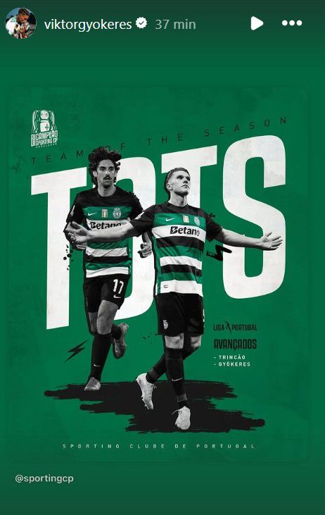 Viktor Gyokeres está na Suécia a gozar uns dias de férias, mas atento ao que se passa em Portugal. Este sábado a Liga revelou os avançados do ano, entre os quais está o sueco do Sporting, que partilhou a informação através das redes sociais.