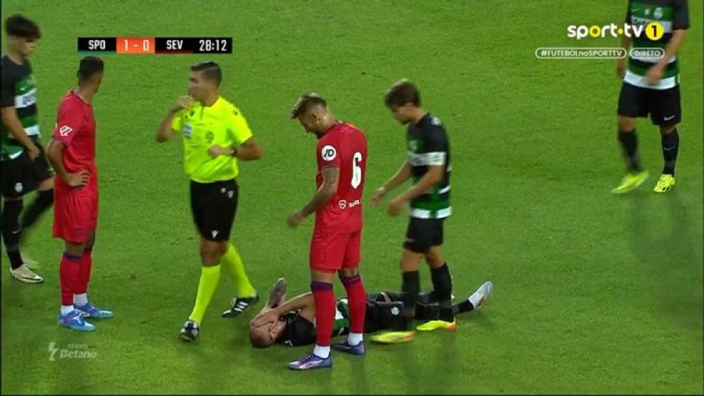 Dor de cabeça para Rúben Amorim, depois de Nuno Santos, que tinha assistido Rodrigo Ribeiro para o golo inaugural, ter saído lesionado no decorrer da primeira parte da partida com o Sevilha, no Estádio do Algarve.