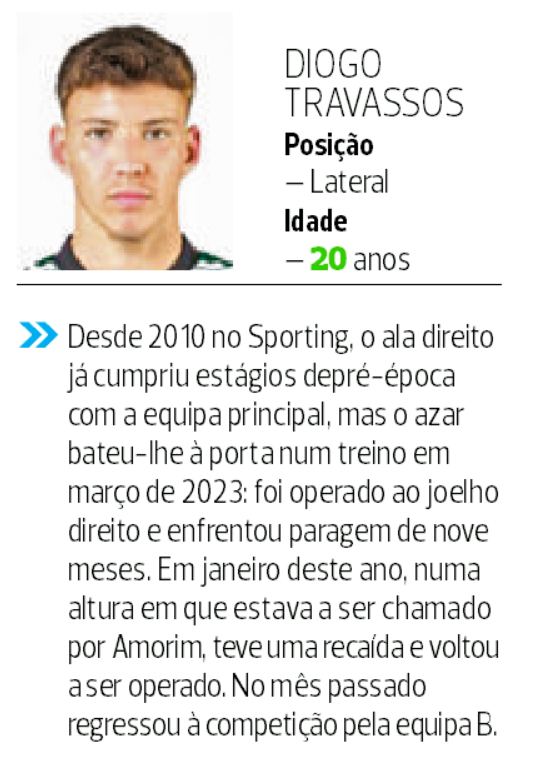 De realçar que Diogo Travassos até fez algumas pré-épocas com Rúben Amorim, mas uma grave lesão afastou-o da ribalta.