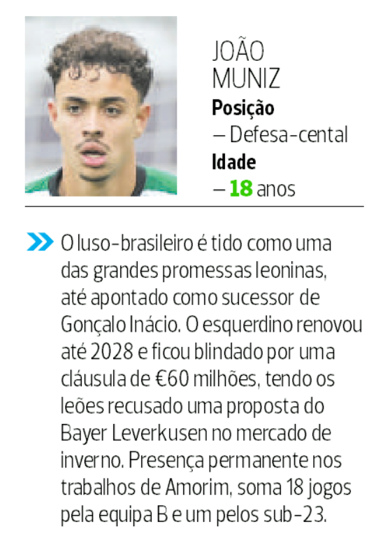 Do lote de jovens que Amorim teve ao seu dispor, destacamos oito: Diogo Pinto, Francisco Silva, João Muniz, Chico Lamba, Diogo Travassos, Geovany Quenda, Rafael Nel e Tiago Ferreira, todos vistos como promessas da cantera leonina, sendo que os dois últimos até se estrearam esta época pela equipa principal nas competições europeias.