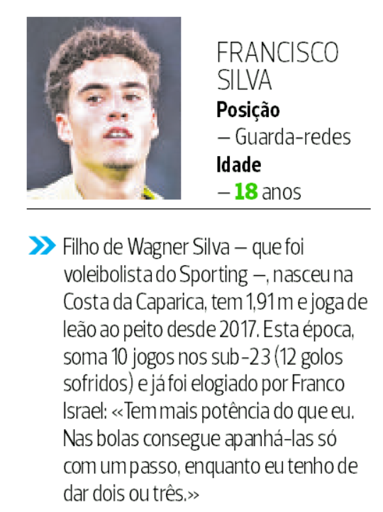 Destes atletas, Diogo Pinto é quem está na pole position para poder somar minutos. Face às lesões de Adán (ver caixa) e Franco Israel, operado ao joelho direito no passado domingo, o jovem guarda-redes é apontado à titularidade diante do Estoril.