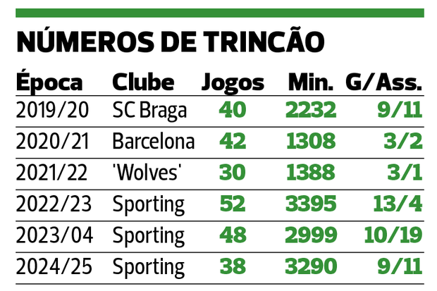 Sendo certo que as últimas exibições de Trincão estão longe do fulgor que já mostrou em campo, os dados são esclarecedores quanto à importância do camisola 17 na equipa leonina, naquela que é a sua melhor época da carreira.