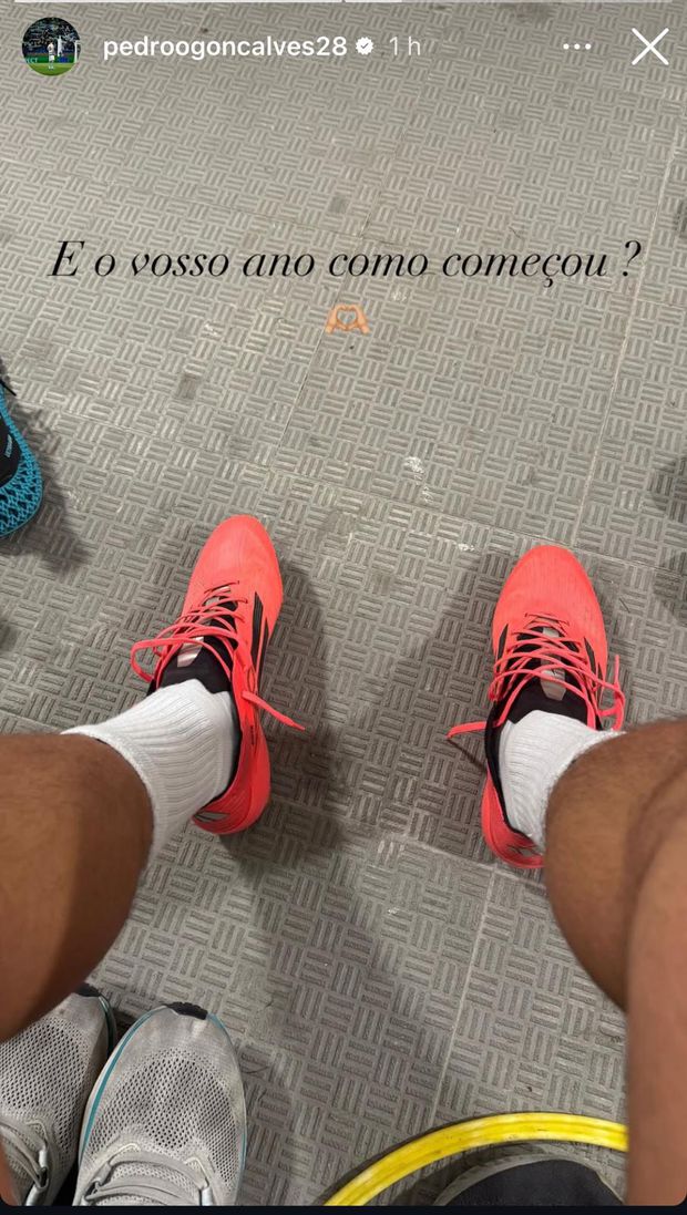 Pedro Gonçalves continua entregue aos cuidados da Unidade de Performance do Sporting mas já calçou as botas, como o próprio revelou numa história na rede social Instagram. «E o vosso ano como começou?», escreveu na publicação.