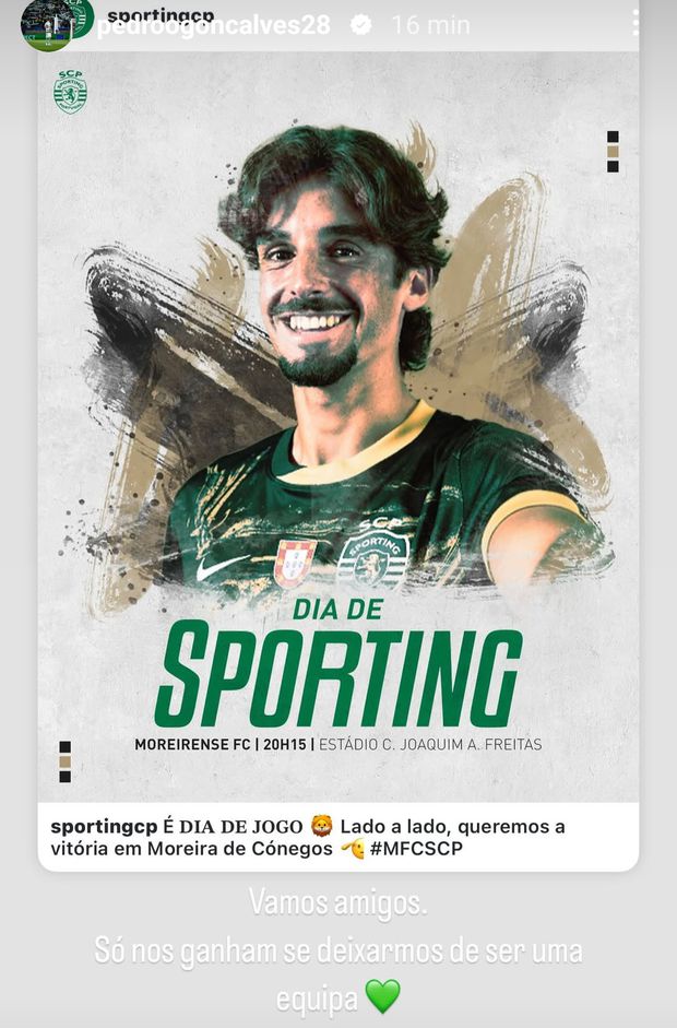 O extremo, lesionado, partilhou um post do Sporting a propósito do jogo com o Moreirense e deixou um apelo, que vale para equipa e adeptos: «Vamos amigos. Só nos ganham se deixarmos de ser uma equipa.»