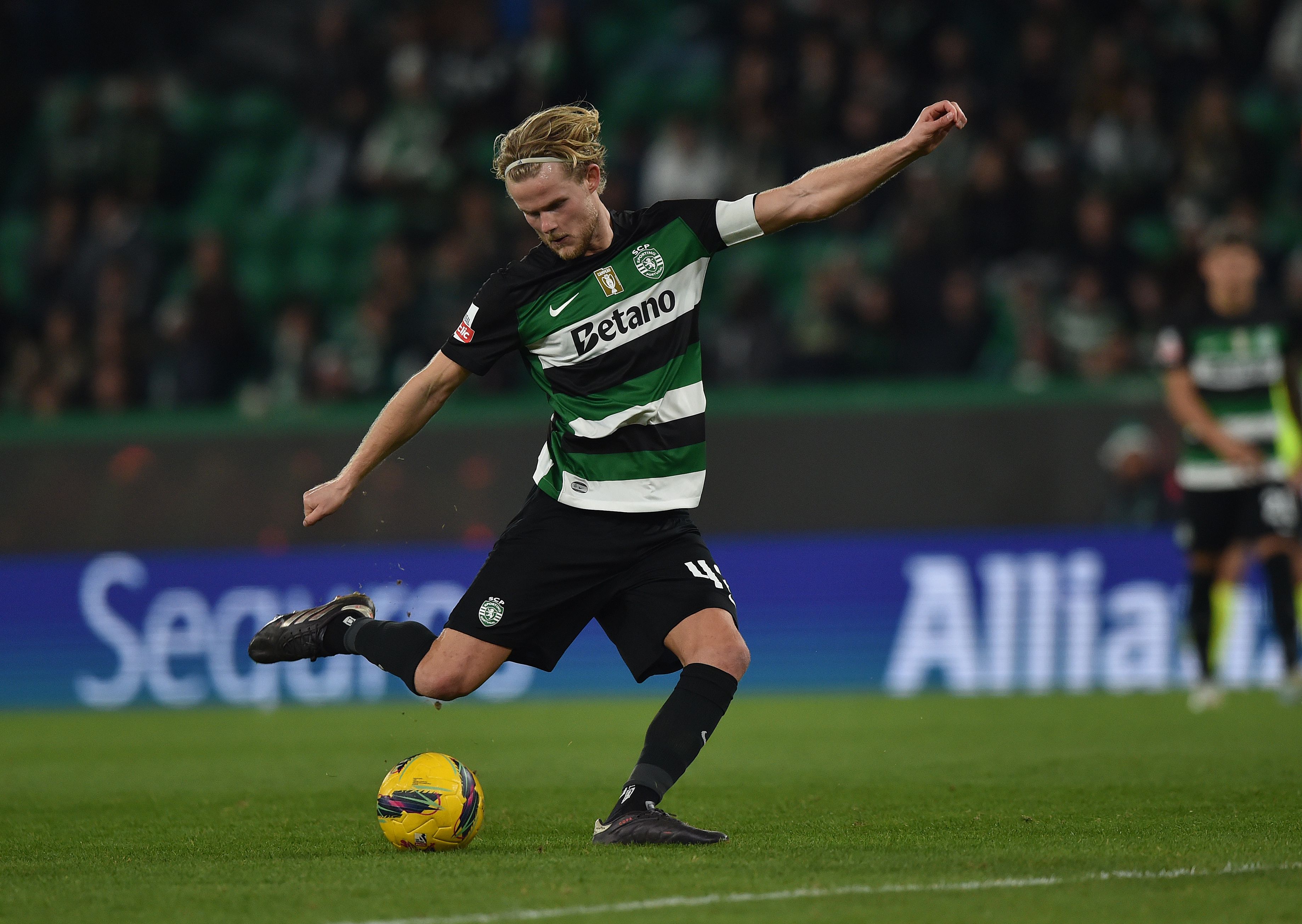 Atrás desta linha, mais um quarteto que se mantém inalterável, com Geny Catamo pela direita, Hjulmand a fazer dupla com o jovem João Simões, de 17 anos, que vai somar a terceira titularidade consecutiva, e Maxi Araújo a preencher o corredor esquerdo. Nada de novo aqui, com João Pereira a manter duas armas de cariz ofensivo no banco de suplentes: Marcus Edwards e Conrad Harder.