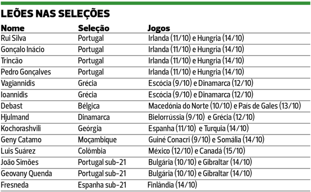 Sporting: quatro leões entram em ação pelas seleções
