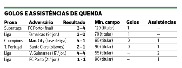 Ora, Quenda, já fez praticamente tudo, menos marcar um golo em Alvalade. Objetivo que, de acordo com o que A BOLA apurou junto de fonte próxima do jogador é algo que deseja muito, assim como sagrar-se campeão de leão ao peito.