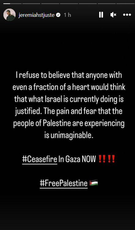Jeremiah St. Juste, defesa-central neerlandês do Sporting, recorreu, este sábado, às redes sociais, para pedir cessar-fogo em Gaza.