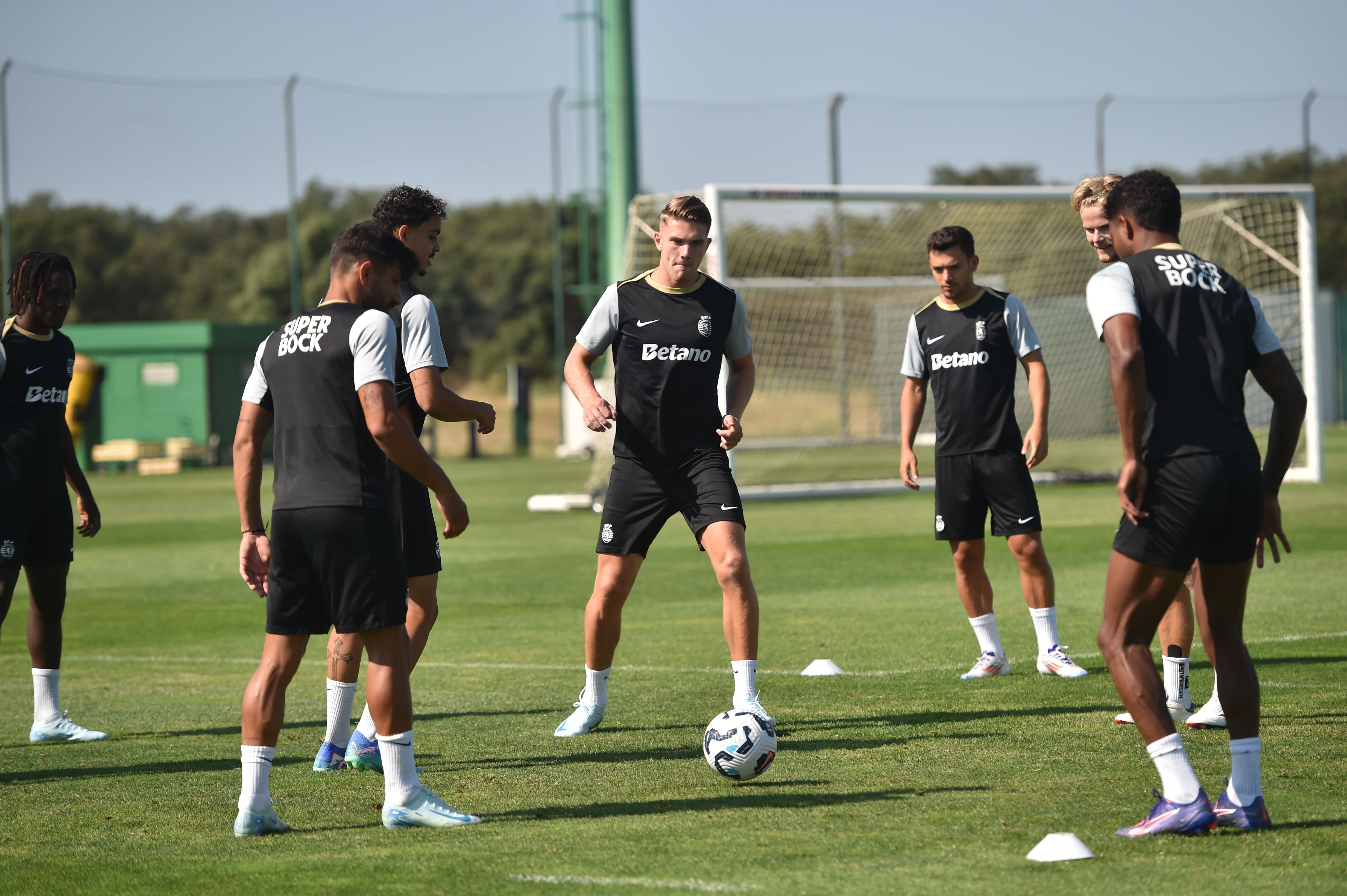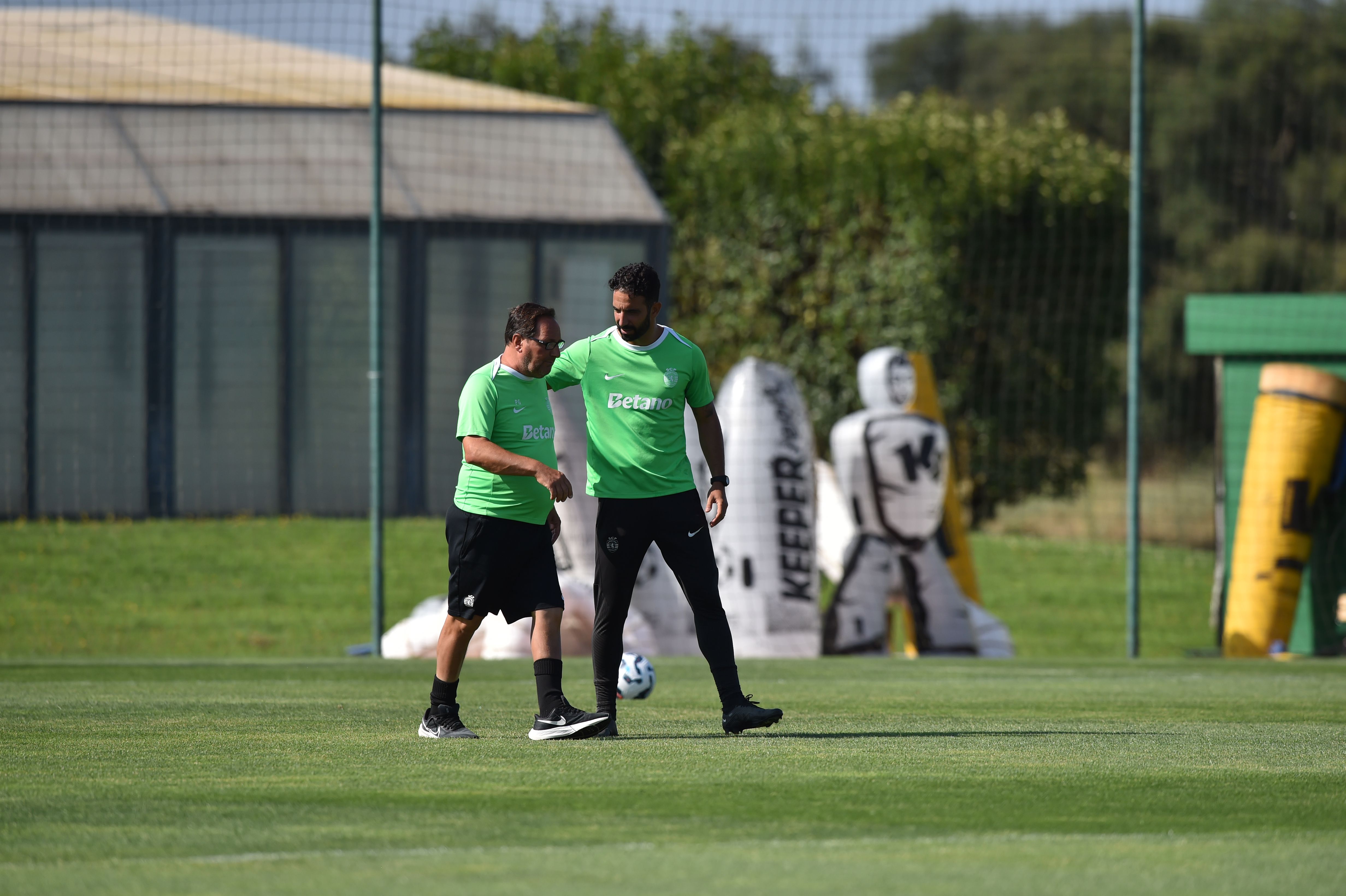 Rúben Amorim não contou com St. Juste, Nel e Nuno Santos, numa sessão de trabalho marcada pela boa disposição.