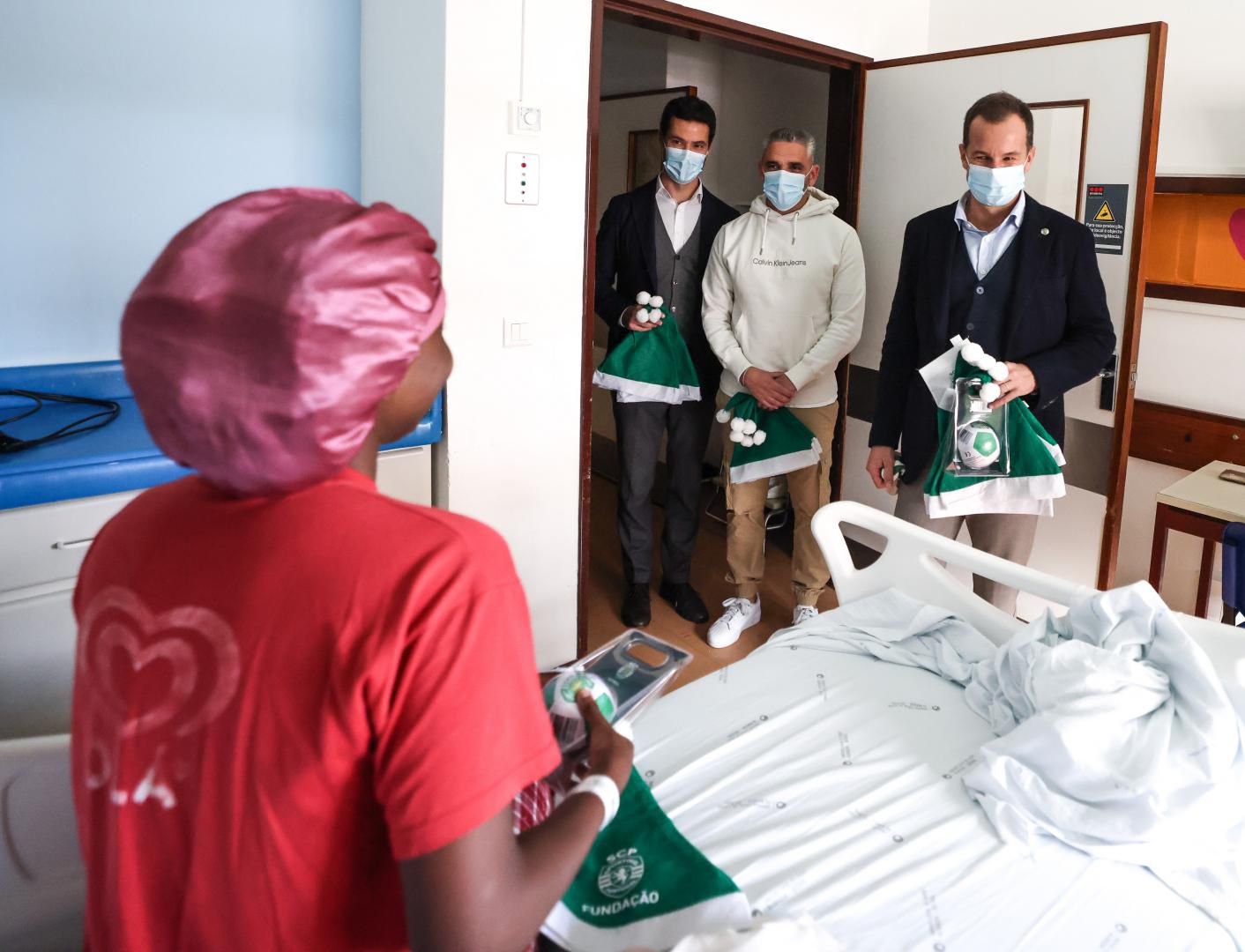 Numa ação promovida pela Fundação Sporting, o presidente Frederico Varandas, acompanhado pelo diretor-geral Bernardo Palmeiro e pelo treinador Rui Borges visitaram a ala pediátrica do Hospital Garcia de Orta, em Almada.