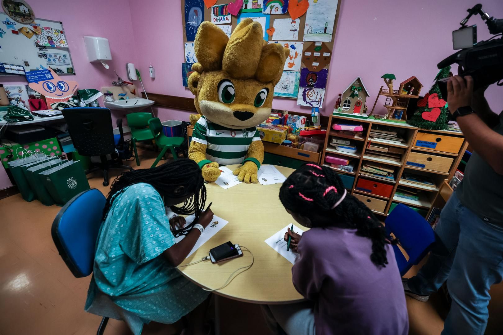 Jubas, a mascote leonina, arrancou sorrisos às crianças, que foram presenteadas com alguns artigos de merchandising do clube de Alvalade.